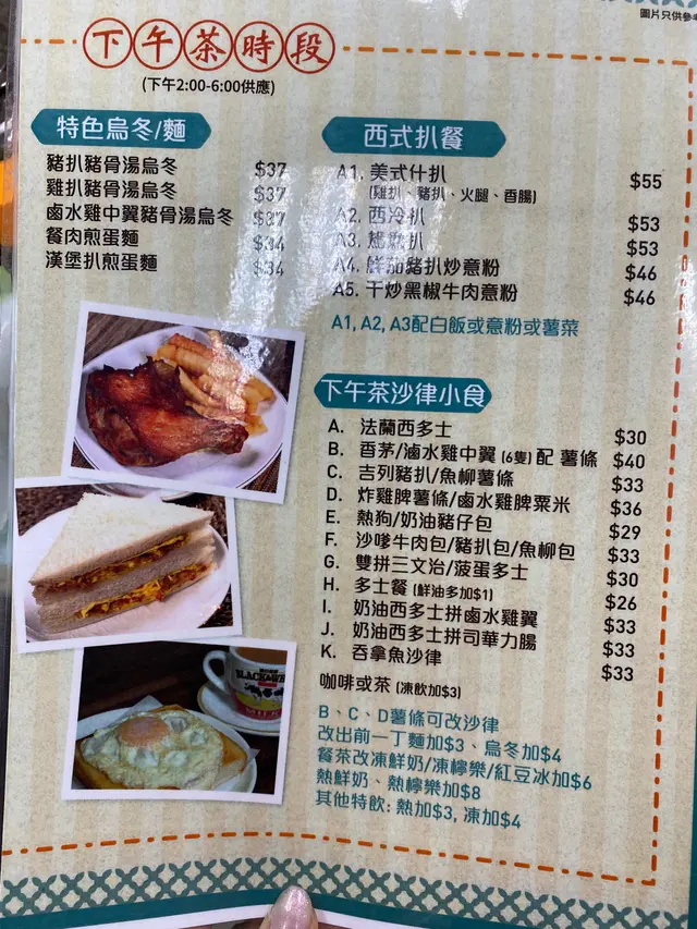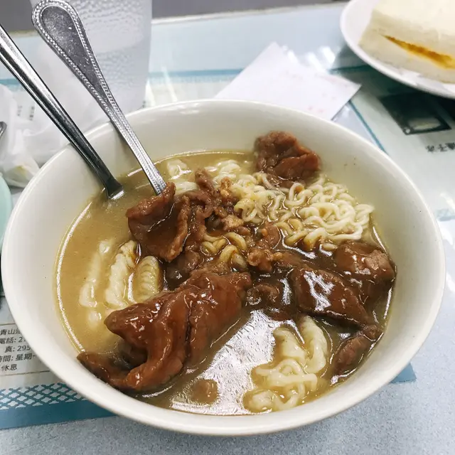 全港九新界的茶餐廳 / 冰室不知道大家吃過幾多間呢?集蘭冰室為六十年代開設於現址的「集蘭士多」轉營。經過歲月的洗禮,冰室面貌改變很多,像是門前放著的西餅凍櫃已經沒有了。裝修後看起來很新很乾淨,不過地板用上綠色懷舊階磚、木色枱櫈、卡位雅座等,還是營造出一種懷舊的味道,而且最重要是還有熟客們的光顧。剛好這天來到時早餐時段已完結,特餐也在上午11點開始供應。熟悉我的人都知道我每次去茶餐廳 / 冰室一定會想點的是 特餐 ($43) 當然不是什麼特餐也吃,最主要因為有 沙嗲牛肉公仔麵。看到個顏色都知道個沙嗲汁超濃厚,可以說是沙嗲的湯底吧!? 超惹味。牛肉也是很入味,口感軟腍,而且份量還頗多,十分足料的喔。火腿奄列 有半滑蛋的感覺,不會太油淋淋這點幾好。特餐的牛油多士轉成了 油占多 (+$4) 是厚身多士,夠脆身,果醬都塗得多。餐飲點了 凍鴛鴦 (+$3) 可能是叫少甜關係,苦中帶甘更突出。…查看更多