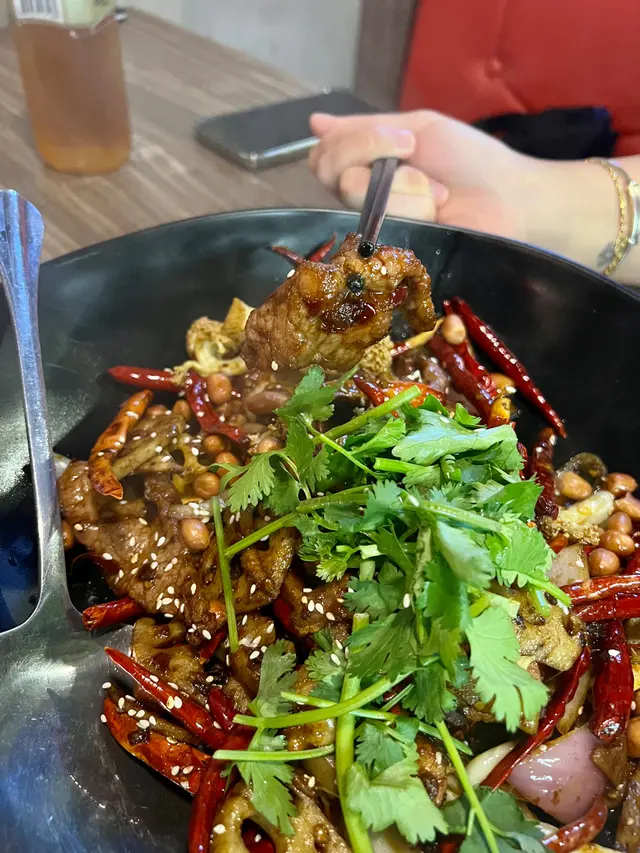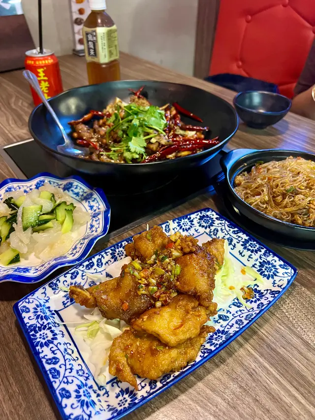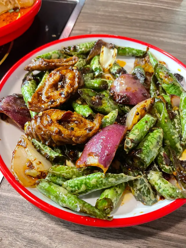 吾系第一次黎食之前黎食印象幾好 味道吾錯份量都夠今次叫左尖椒炒肥腸52蚊 吾期望佢會成碟都系腸但點都吾預計佢好似比人食淨廚餘咁款呢張相系未食過搵哂成碟得4舊肥腸 仲要有兩舊系營養不良問埋店員 佢都系話4舊系午餐標準我真系求其街邊買串炸大腸都多過佢究竟系我食腸吾知腸貴 定店家比既份量小器建議改名做尖椒洋蔥炒4舊肥腸 免得其他客人吾知情而中伏!另外同行朋友有叫咕嚕雞球一上枱好大陣醋味怕酸朋友記得吾好嗌 之前吾明點解呢間咁少客 宜家明喇店家值得擁有 …查看更多