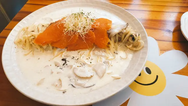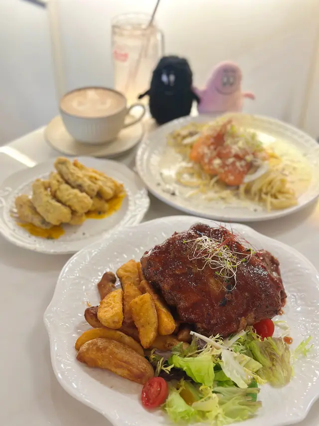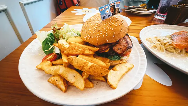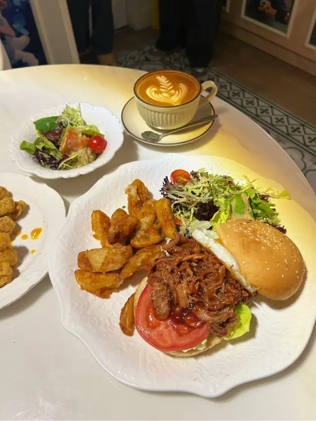 「雙魚座咖啡」係出名的應援餐廳,今期係G Dragon😍😍,型呀,好多poster、相、手幅,仲推出「權志龍限定應援餐單」✨🍴金沙蛋黃單骨雞翼$78(8件):單骨方便食用,但金沙蛋黃炒得唔夠乾身,唔夠香。✨🍴🍔日本人和黃車打芝士煙肉漢堡配海鹽薯角$128: 呢個漢堡好多人推薦,但我覺得漢堡唔夠鬆、且有點實,肉味唔夠。薯角就正常水準囉。✨🍝黑松露忌廉煙三文魚扁意粉$108: 黑松露好香,配合煙三文魚估唔到幾夾喎,意粉有咬口,整體好吃😋。✨🍰自家製巴斯克芝士蛋糕$50: 蛋糕軟綿滑溜好食,我自己消滅一整件,咁你話好唔好食🤤?點咗杯「白桃雪糕梳打」就真不是我杯茶。…查看更多