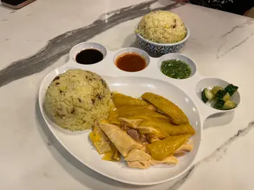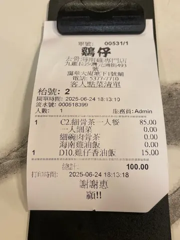 今日同朋友试咗「鸡仔去骨海南鸡专门店」🐔,听个名都知主打海南鸡啦!我哋叫咗几样嘢试下,整体嚟讲都几唔错㖞😋。首先系个「招牌海南鸡油饭」,啲鸡真系好滑溜,完全去晒骨啖啖肉,好方便食👍。鸡皮爽口,鸡肉嫩滑有鸡味,配埋个黄澄澄嘅油饭,饭粒分明索晒鸡油香,正呀!🍚另外仲试咗个「金沙香蒜鸡油饭」,呢个就喺海南鸡上面洒满金黄色嘅炸蒜蓉,食落去劲香口惹味🤤。啲蒜蓉脆卜卜,同滑鸡一齐食口感好丰富,钟意重口味啲嘅朋友可以试下呢个!小食方面叫咗个「泰式无骨凤爪」,酸酸辣辣好开胃🌶️。凤爪爽弹,已经去晒骨,食落啖啖都系骨胶原,夏天食一流!仲有跟餐送嘅鸡汤🥣,虽然系送嘅,但都唔马虎,味道清甜,饮完成个人暖笠笠。整体嚟讲,呢间鸡仔啲鸡真系做得几好,去骨够晒贴心,油饭亦够香。价钱都算亲民,可以encore!💯…查看更多