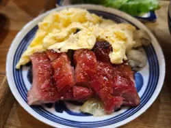 鸡味浓位于湾仔大皇东街, 晚上8时许仍见到店内有不少客人,只有一张吉枱,所以估计不会太差,入去一试。叫了3份餐,分别是叉烧炒蛋饭,叉烧切鸡饭和肉饼煎蛋饭。说实在,3份餐的味道都是ok的,肉饼和蛋也是即煎,上枱是热辣辣的。虽然没有惊喜,但也不会令人失望。就价钱而言,此店位于湾仔区,加上是假日的晚上,每份餐只是七十余元,有烧味,有饭,有汤再加碟菜,就算叫多一杯饮品,也只是加多10, 3份餐加2杯额外饮品也是$235,算是价钱合理。