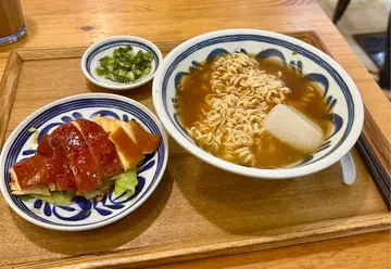 这个店环境干净服务态度好价钱尚算正常未去到有惊喜差不多要六十零蚊一个叫咗两个下午茶餐都系配公仔面自己煮可能会好过佢😂𩠌份量不算多,可能因为系茶餐店内标榜霸王鸡可能会好食啲