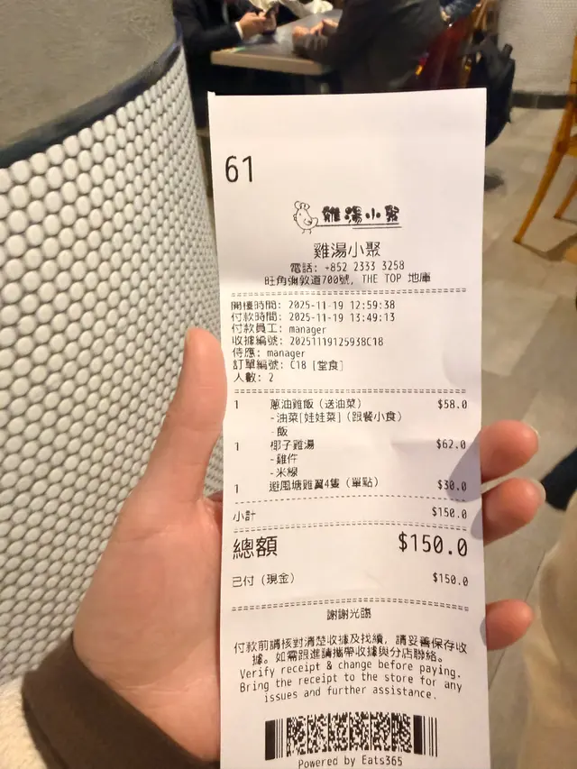 雞湯小聚 (旺角) 网址: https://s.openrice.com/QrLS0cfuD00 地址: 香港旺角彌敦道700號T.O.P This is Our Place地庫R1號舖
