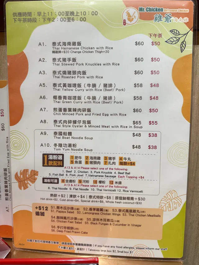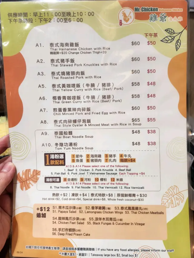 海南雞冬陰功湯檬 + 青檸梳打 (茶餐時段)