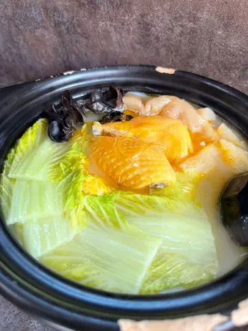 11月8日下午2:00去到,要排队20分钟后先有得入,真系多人食。我叫咗一个花胶竹笙鸡汤米线$72 ,加$6转油鸡,套餐加$12叫咗一杯手打柠檬茶。油鸡系去骨,个汤有金华火腿,味道浓郁,真系好好味,我差不多饮晒成碗汤。我个女叫咗椰子花胶竹笙鸡汤米线$72 ,套餐加$6 要咗一杯冻绿茶,佢话椰子味好重,相对鸡味淡啲,虽然一样好饮,但系佢话钟意我𠮶碗鸡汤多啲。另外再叫咗一份两只桂花醉鲍鱼$38 ,有虫草花及芽菜伴碟,鲍鱼好入味,美中不足系鲍鱼原只上,如果切开相会食得比较方便😁总括嚟讲,元朗呢间小店系值得支持!…查看更多