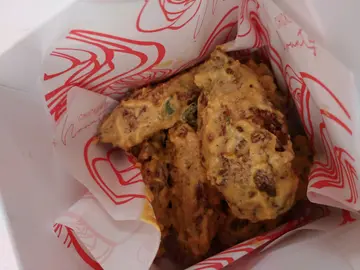 好耐之前食过芝士味 觉得劲正 但今次去到好似转左menu 无咗芝士味😭不过鸡翼山呢到出咗名劲多特别口味选择😝所以决定试下咸蛋黄味😋虽然叫四只但系最后比咗5只我哋🤩鸡翼又大只又有嫰口 即叫即炸 最重要系咸蛋黄味调得啱啱好唔会太腻 同鸡翼真系perfect match💯.Chicken Wings to a whole new level 😋 i tried the cheese one previously but for some reason its not there anymore ☹️ this place is famous for having many different chicken wing choices! I tried the salted egg yolk which was AMAZING! Freshly fried and Big chicken wings 🐓 covered with salted egg yolk sauce! Not too salty and it matches the wings quite well. Also i ordered 4 but they gave us 5 ☺.what did i order:鼠尾草咸蛋黄哥 4只 ($38) 😋😋😋…查看更多