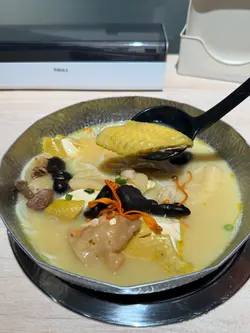 身为花胶鸡汤底嘅忠实粉丝,今次又嚟到 #鸡駅 报到!佢哋嘅汤底真心出色,花胶份量足料,性价比高,绝对系回头之选~🌟 招牌花胶鸡米线汤底金黄浓郁,一上枱已经闻到阵阵鸡汤香!花胶厚身软糯,入口即化,满满骨胶原感觉~鸡肉嫩滑唔柴,米线索尽汤汁精华,每一啖都系幸福滋味!💛🍄 姫松茸竹笙花胶鸡米线升级版同样惊艳!姬松茸香气独特,竹笙吸汤能力满分,搭配花胶同鸡汤,鲜味层次再升华~滋补养颜之选,女士们必点!✨🍟 明太子酱薯条邪恶但无法抗拒!明太子酱creamy又带微辣,铺满喺脆炸薯条上,咸香惹味,食到停唔到口~ perfect match!