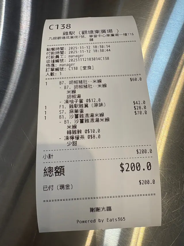 雞駅花膠雞米線專門店 (观塘) 网址: https://s.openrice.com/QrLS0a7SD00 地址: 香港觀塘成業街7號東廣場1樓116號舖 电话: +852 22690838