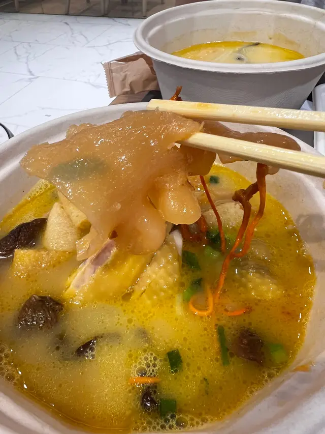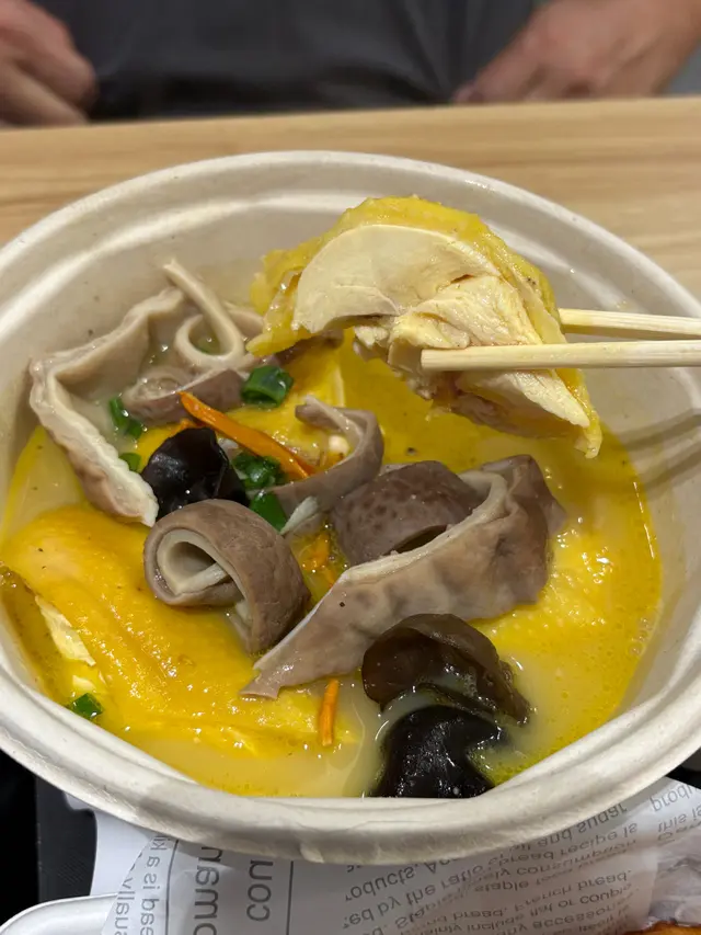 位於觀塘的雞湯米線分店,堂食外賣也可。堂食的話,小店外面只有數張小檯。中庭位置也有個美食廣場,供不同食店的客人用餐。麻藥蛋蛋黃半熟狀態,帶濃香的麻油味,很開胃。手拍青瓜另一款小食點了這份青瓜粒,拌上辣醬汁,口感爽脆清新。酸菜魚米線除了雞肉外,還有酸菜魚湯底,湯頭濃郁,酸酸辣辣,魚片薄片滑溜,另外還有很多配料,如酸菜、雲耳等,足料。麻藥雞拌麵雞件蠻多,肉質嫩滑,厚肉。還有麻藥蛋、青瓜粒,加點麻辣醬汁拌勻,米線掛滿醬汁,帶有麻油香,越吃越惹味。…查看更多