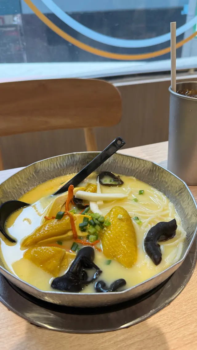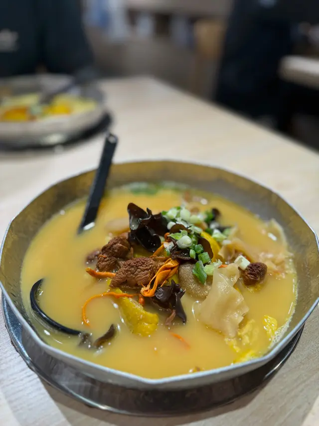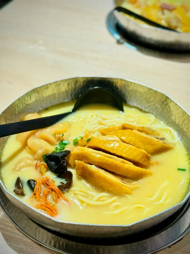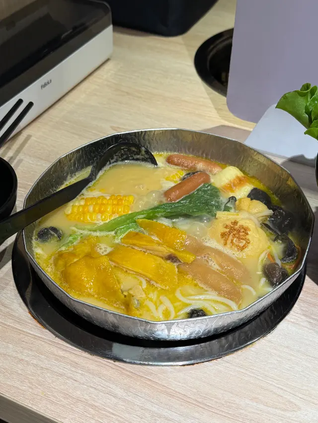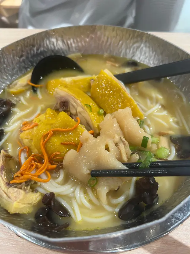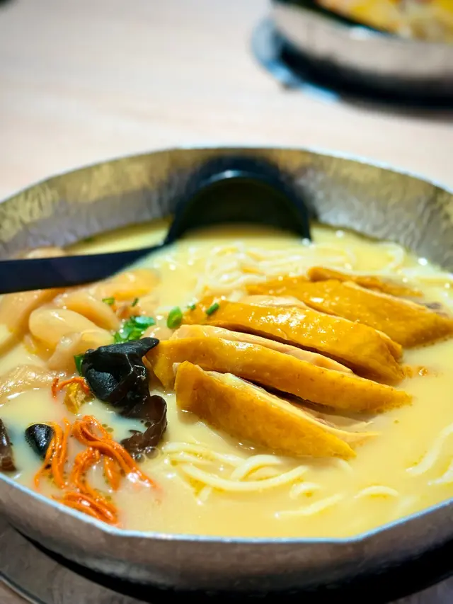 從駱駝漆大廈的始創店一直支持「雞駅」,到而家已經開到第三間分店,米線關注組都大推,真係深得民心!🥰🙌🏻每間分店都有唔同嘅特色,東廣場分店座位唔多,但地理位置最近地鐵站,外賣自取🥡好方便。業運工業大廈分店環境最舒適,有一人火鍋🍲供應,我個人最鍾意❤️去業運工業大廈分店,因為仲有免費羅漢果茶供應,勁貼心!🥰除咗招牌花膠雞米線之外,其實仲有其他粉面飯🍚如擔擔麵、花甲粉等供應。粉麵由$45起,價格相宜,CP值高,可謂觀塘區上班族恩物💕🤩😚🔸姬松茸竹笙花膠雞米線($78)湯底甘香順滑,鮮香味美,🥰雖然唔係濃稠到黏口個種,但勝在無味精,飲完都唔會覺得口渴。👍🏻花膠真材實料,足三大塊!口感腍滑厚身~😙而雞則嚴選三黃雞,份量足,有五六件之多,肉質嫩滑有雞味!😌姬松茸爽脆;竹笙爽脆,吸滿湯汁,不過就得一塊。🔹雞駅一人火鍋餐($88起)1️⃣6款自家湯底任選其一2️⃣自選一款肉類🥩:豬、牛、雞🐓3️⃣自選一款主食:米線、飯🍚、上海麵4️⃣每鍋都有固定配料:長腳蟹棒x2、芝士竹輪x1、芝士腸x2、福袋x1、時菜、粟米、雲耳、金菇、蟲草花我哋揀左藥膳黃酒花膠湯,一上枱就聞到香濃黃酒香✨☺️藥材味唔會好重,但酒香十足,飲落順喉暖胃💯🥰極黑豚肉片($98)份量勁多,有7至8塊,美國🇺🇸SRF 極黑豚肉質鮮嫩多汁,帶細緻的大理石油花,肉味濃郁。👍🏻另外,欣賞店家加湯都係加雞湯!❤️ 🔸椒鹽粟米🌽($38)炸至金黃,外酥內軟,加上椒鹽等調味,夠晒香口惹味!😎…查看更多