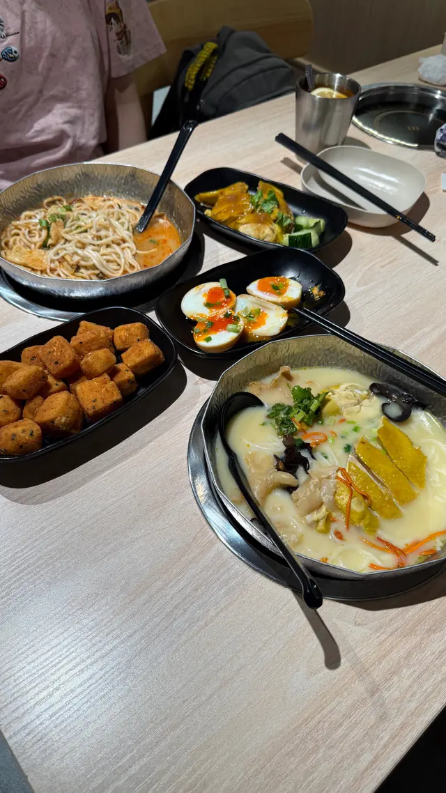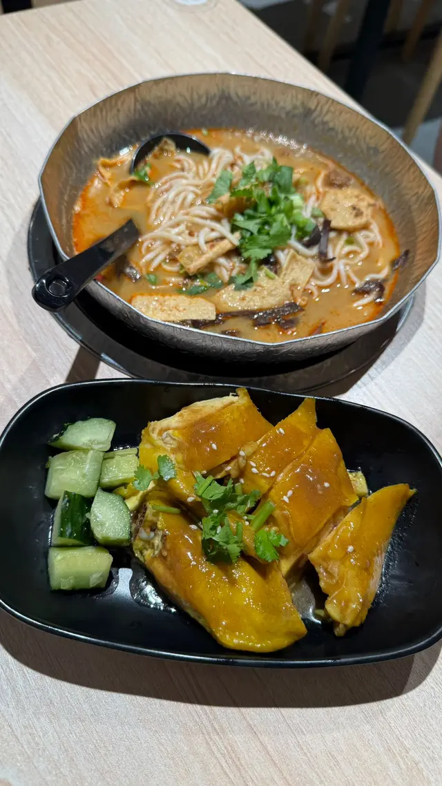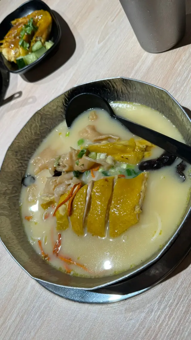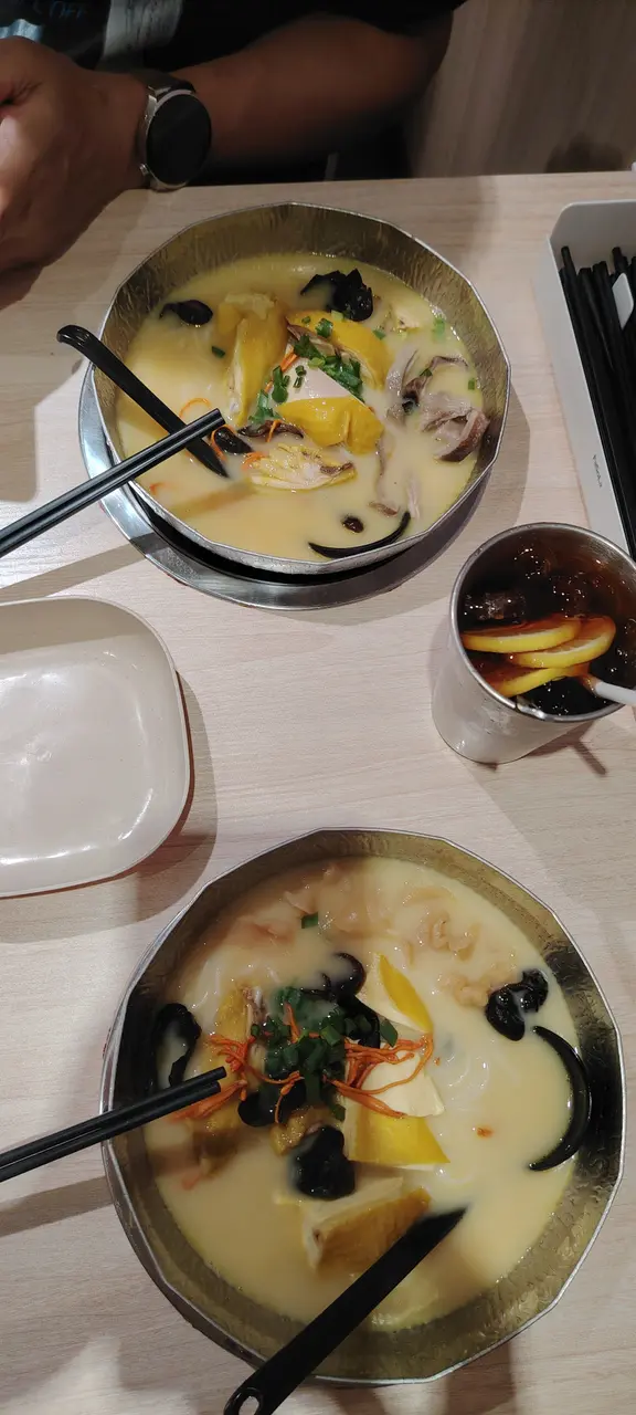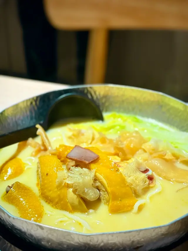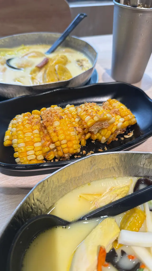 從駱駝漆大廈的始創店一直支持「雞駅」,到而家已經開到第三間分店,米線關注組都大推,真係深得民心!🥰🙌🏻每間分店都有唔同嘅特色,東廣場分店座位唔多,但地理位置最近地鐵站,外賣自取🥡好方便。業運工業大廈分店環境最舒適,有一人火鍋🍲供應,我個人最鍾意❤️去業運工業大廈分店,因為仲有免費羅漢果茶供應,勁貼心!🥰除咗招牌花膠雞米線之外,其實仲有其他粉面飯🍚如擔擔麵、花甲粉等供應。粉麵由$45起,價格相宜,CP值高,可謂觀塘區上班族恩物💕🤩😚🔸姬松茸竹笙花膠雞米線($78)湯底甘香順滑,鮮香味美,🥰雖然唔係濃稠到黏口個種,但勝在無味精,飲完都唔會覺得口渴。👍🏻花膠真材實料,足三大塊!口感腍滑厚身~😙而雞則嚴選三黃雞,份量足,有五六件之多,肉質嫩滑有雞味!😌姬松茸爽脆;竹笙爽脆,吸滿湯汁,不過就得一塊。🔹雞駅一人火鍋餐($88起)1️⃣6款自家湯底任選其一2️⃣自選一款肉類🥩:豬、牛、雞🐓3️⃣自選一款主食:米線、飯🍚、上海麵4️⃣每鍋都有固定配料:長腳蟹棒x2、芝士竹輪x1、芝士腸x2、福袋x1、時菜、粟米、雲耳、金菇、蟲草花我哋揀左藥膳黃酒花膠湯,一上枱就聞到香濃黃酒香✨☺️藥材味唔會好重,但酒香十足,飲落順喉暖胃💯🥰極黑豚肉片($98)份量勁多,有7至8塊,美國🇺🇸SRF 極黑豚肉質鮮嫩多汁,帶細緻的大理石油花,肉味濃郁。👍🏻另外,欣賞店家加湯都係加雞湯!❤️ 🔸椒鹽粟米🌽($38)炸至金黃,外酥內軟,加上椒鹽等調味,夠晒香口惹味!😎…查看更多