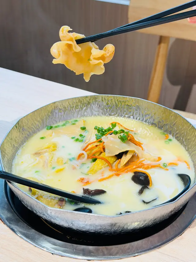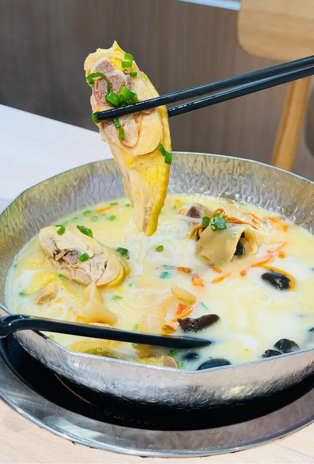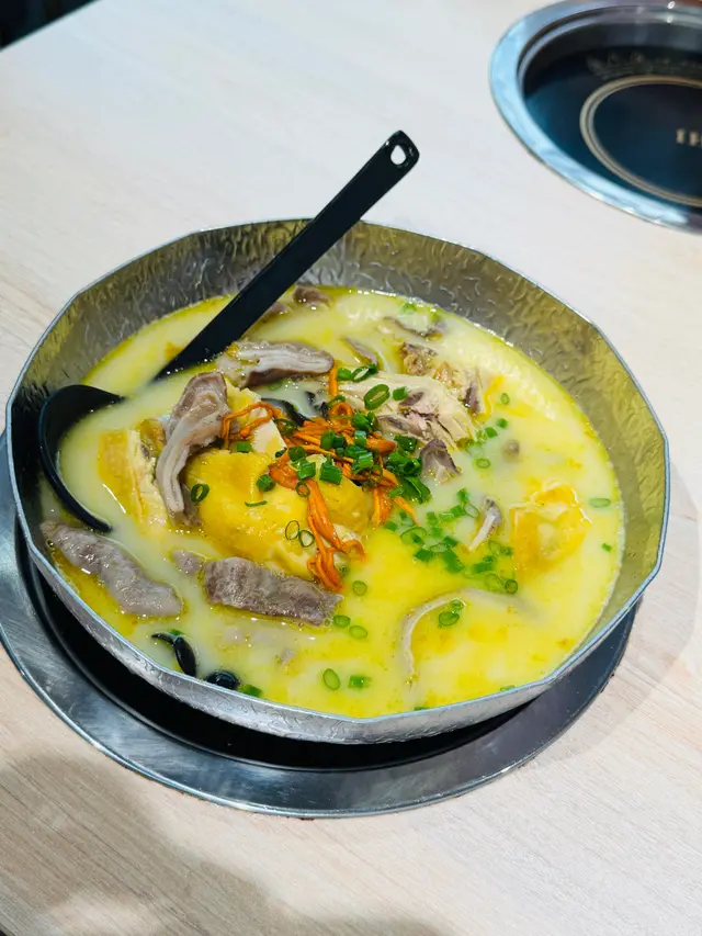 從駱駝漆大廈的始創店一直支持「雞駅」,到而家已經開到第三間分店,米線關注組都大推,真係深得民心!🥰🙌🏻每間分店都有唔同嘅特色,東廣場分店座位唔多,但地理位置最近地鐵站,外賣自取🥡好方便。業運工業大廈分店環境最舒適,有一人火鍋🍲供應,我個人最鍾意❤️去業運工業大廈分店,因為仲有免費羅漢果茶供應,勁貼心!🥰除咗招牌花膠雞米線之外,其實仲有其他粉面飯🍚如擔擔麵、花甲粉等供應。粉麵由$45起,價格相宜,CP值高,可謂觀塘區上班族恩物💕🤩😚🔸姬松茸竹笙花膠雞米線($78)湯底甘香順滑,鮮香味美,🥰雖然唔係濃稠到黏口個種,但勝在無味精,飲完都唔會覺得口渴。👍🏻花膠真材實料,足三大塊!口感腍滑厚身~😙而雞則嚴選三黃雞,份量足,有五六件之多,肉質嫩滑有雞味!😌姬松茸爽脆;竹笙爽脆,吸滿湯汁,不過就得一塊。🔹雞駅一人火鍋餐($88起)1️⃣6款自家湯底任選其一2️⃣自選一款肉類🥩:豬、牛、雞🐓3️⃣自選一款主食:米線、飯🍚、上海麵4️⃣每鍋都有固定配料:長腳蟹棒x2、芝士竹輪x1、芝士腸x2、福袋x1、時菜、粟米、雲耳、金菇、蟲草花我哋揀左藥膳黃酒花膠湯,一上枱就聞到香濃黃酒香✨☺️藥材味唔會好重,但酒香十足,飲落順喉暖胃💯🥰極黑豚肉片($98)份量勁多,有7至8塊,美國🇺🇸SRF 極黑豚肉質鮮嫩多汁,帶細緻的大理石油花,肉味濃郁。👍🏻另外,欣賞店家加湯都係加雞湯!❤️ 🔸椒鹽粟米🌽($38)炸至金黃,外酥內軟,加上椒鹽等調味,夠晒香口惹味!😎…查看更多