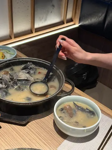 朋友想食韩烧,我第一时间谂到尖沙咀海港城嘅雪下觅炙,佢除咗食物有质素,佢环境都非常舒适。好适合同朋友聚餐食饭慢慢倾。一坐低,侍应就拎咗多碟韩式前菜小食过嚟,仲全程帮我哋烧肉,服务态度细心又nice。佢哋今期季节新品非常出色,系各种食材同山野菇菌嘅搭配组合。和牛.牛肝菌寿喜烧,啲和牛切得精细,肉质好嫩滑,寿喜烧汁入味带点微甜,唔会过咸,好合拍。山野菇菌·和牛烧肉盛,摆盘有讲究,放置在一本好似宝典咁嘅书入面,打开将面头张纸烧著拉开序幕,就见到摆盘靓靓嘅和牛同菇类,和牛雪花色泽均匀。纹路起靓份量十足,肉片鲜红带油脂,牛肝菌同山野菇菌够鲜甜,侍应帮我哋烧到刚刚好,香气扑鼻,肉质弹牙又嫩,入口即化。彦阳和牛沙葱烧,系用和牛卷起嘅葱卷,烧到正好,葱香同和牛肉配搭香口,肉质一流。羊肚菌参鸡汤,呢个真系劲有惊喜,估唔到佢嘅用咗原只竹丝鸡同人参,劲多料,最钟意佢粥底口感层次丰富,入口系羊肚菌嘅香,又有啲药膳同红枣香,饮落好暖胃,感觉好滋补。蟹粉石头锅饭,在热辣辣石头饭上淋上香浓蟹粉,饭粒粒分明带有淡淡蟹香,石锅底嘅焦香饭粒加埋蟹粉嘅鲜甜,带香脆口感,实在惹味。荔枝梳打同菠萝梳打,清甜又爽口,啱啱好解腻,卖相仲要好靓。…查看更多
