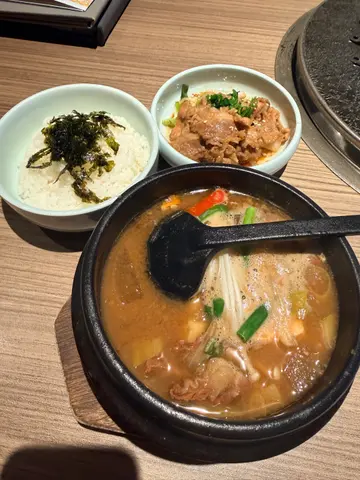 呢日同母亲大人嚟到海港城食烧肉🔥~睇中呢间店烧肉时有满满嘅仪式咁🎍,而且啲肉类几靓~呢个山野菇菌和牛烧肉盛上台时好似一本书咁📖~职员会喺你面前用火将佢个面烧开~见到里面靓靓嘅和牛同时令菇菌🌟~职员仲会帮你烧好啲肉同菇~包括鸡油菇,珊瑚菇等特别嘅菇类🍄,挠埋双手就可以享受美食~另外呢个和牛牛肝菌寿喜烧都好好味,因为个和牛油脂丰富🐮~唔使煮得太熟,等佢吸收咗甜甜嘅寿喜烧汁后🫕~连埋个牛肝菌,仲有鲜鸡蛋同白饭一齐食🥚~甜甜香香,非常推荐!另外仲叫咗个彦阳和牛沙葱烧~呢个和牛烧得焦香一啲😋,配埋沙葱一齐食~不过啲沙葱有啲渣,但牛肉就好香好好味👍~Klook 95折优惠码: HELENC5KLOOK平时我都好钟意点人参鸡汤🐔~呢度嘅羊肚菌参鸡汤用上咗乌鸡,而且煮到鸡骨都好绵好化🦴~人参味唔算好重,会有唔少嘅羊肚菌同埋红枣等药材🫘~啱晒呢啲秋风起嘅时间补一补🌬~最后再食埋蟹粉石头锅饭🍚~呢个用蟹粉捞嘅版本真系劲香劲鲜🤩~佢嘅锅底仲有少少饭焦,夹埋啲蟹粉食真系回味无穷~呢间店空间阔落,而且职员服务都好好👍~无论同屋企人定朋友嚟食都好适合~…查看更多