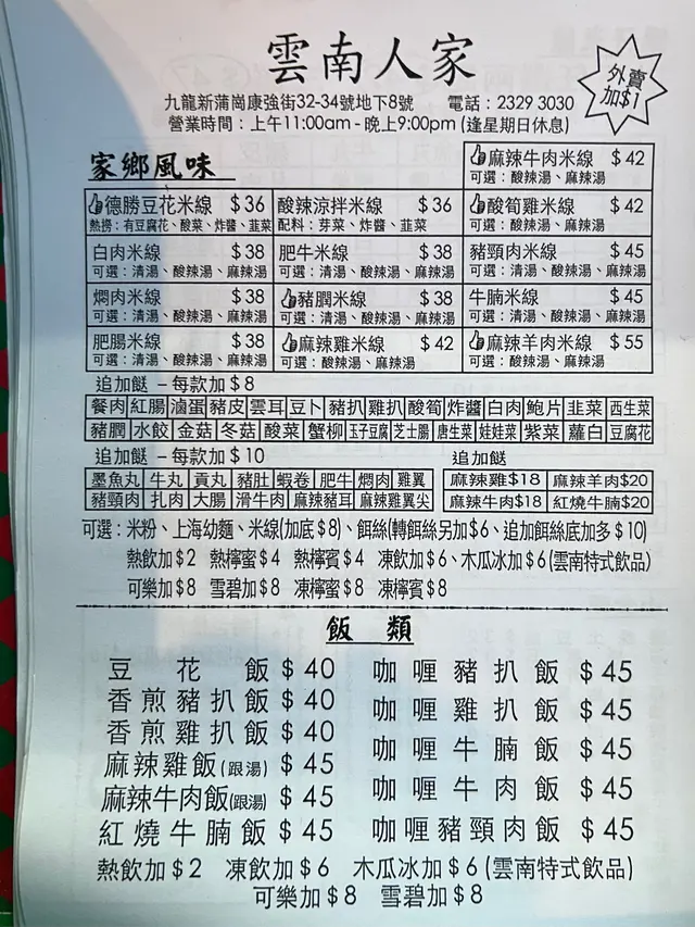 雲南人家風味餐廳 (新蒲岗) 网址: https://s.openrice.com/QrLS0itq000 地址: 香港新蒲崗康強街32-34地下8號 电话: +852 23293030