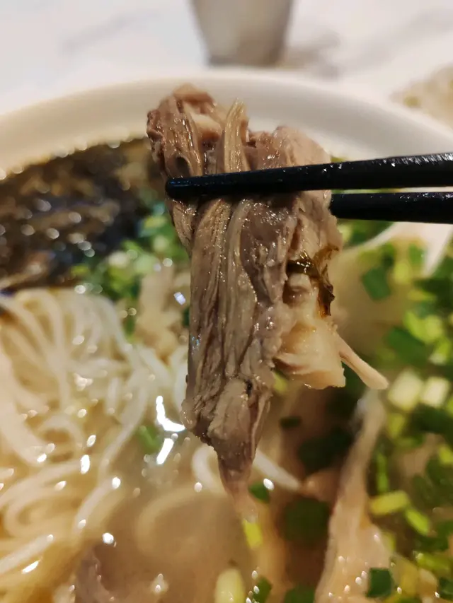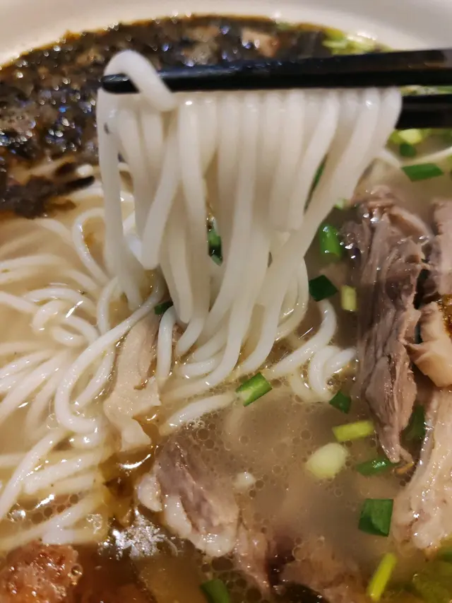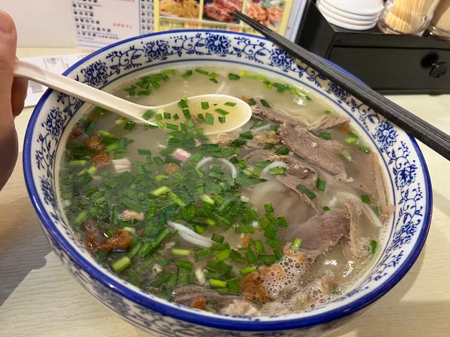 This was my first visit to this local noodle restaurant. I had its signature rice noodle soup with lamb in clear broth.The thin sliced lamb was tender and the broth was flavourful (though I personally think it was a little bit salty). It was nice but be reminded that the restaurant is small and will have to queue from 1245 onwards.…查看更多