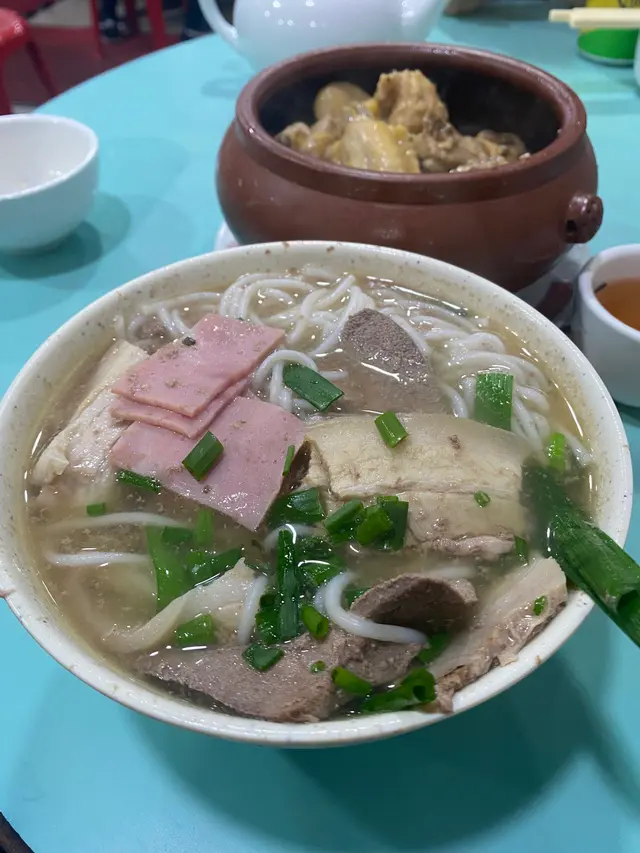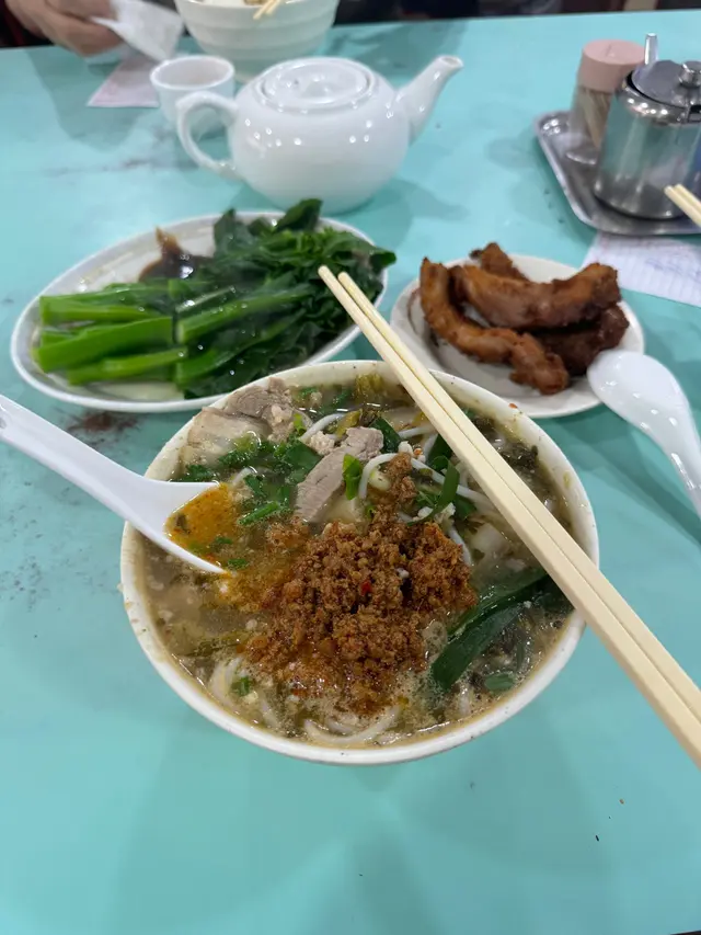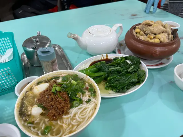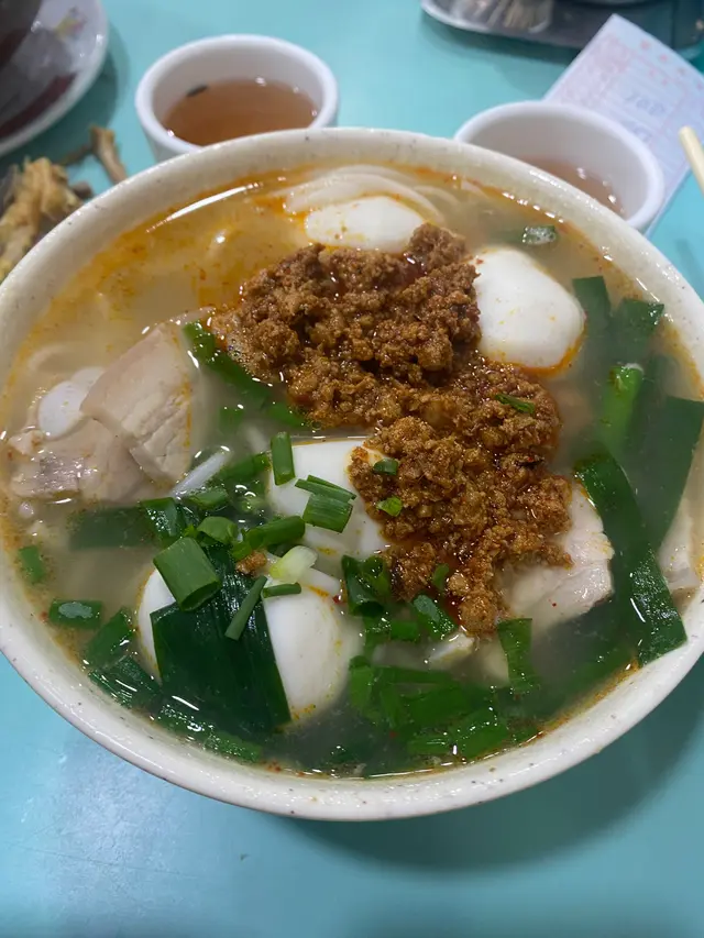 復活節下晝12點到已經坐咗一半人聽聞呢間係深水埗隱世米線店魚蛋腩肉炸醬酸辣米線 $52呢度酸辣係計一個餸 $5魚蛋好彈牙,怪得知好多台都有叫腩肉冇醃製過,白肉但冇豬臊味炸醬香口入味,份量多酸辣同出面唔同呢間酸 > 辣酸菜非常多而且有適量肉碎個人認為比起出面大部份偏辣偏油嘅米線呢間比較特別🌸🌸🌸🌸🌸一入嚟姐姐會放上一壺茶係普洱嚟嘅冇收茶錢㗎😂見到有啲人食佢嘅汽鍋雞呢間都似係街坊嘅食堂不斷有客人下次經過都會再返嚟食💕…查看更多
