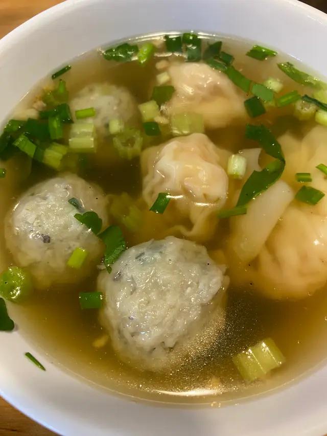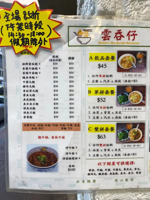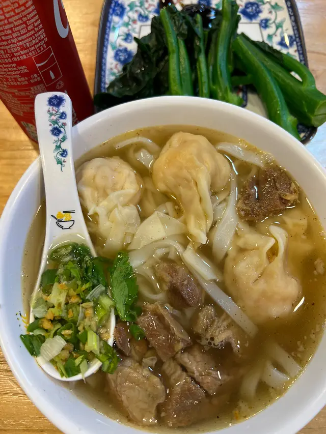 過咗年想搞下d花,就去太子花墟逛逛,買買買之前,梗係食食食先🥹係太子呢頭邊行邊睇,想食粉麵,見到雲吞仔下午茶有85折,㩒一㩒計數機,原本$45嘅A餐,折實$38,超抵呀!咁就食雲吞麵🤗!入到嚟詳細d睇下menu,雙拼+多個菜,85折咗$53;雙拼之餘,見隔離枱個撈粗好靚仔,太難揀啦😂最後揀咗鯪魚球+招牌雲吞+撈粗+凍檸茶估唔到撈粗跟咁大碗湯,即刻飲一啖,對板!熱辣辣,d葱好香,勁新鮮,湯頭甜,冇味精,掂!飲下飲下,隊哂成碗,仲清埋d香葱。招牌雲吞唔使多講,見店員係度密密包,呢頭包,果頭煮,鮮味足;開半睇睇,原粒🦐+少少豬肉,薄薄嘅外皮,一咬d肉汁流出,勁好食。鯪魚球好出色,一睇就知係新鮮手打,同機造的不同。食落有芫荽,香味提升;要撻到起膠先夠爽彈,呢啲一食就知,呃唔到人,真材實料,介紹大家必食。😬見到撈粗O咗咀,咁大碗嘅🤭原來撈麵要加錢係有原因,呢度起碼兩個餅麵,勁多囉,食完飽到晚餐都唔使食。大碗得嚟,撈粗就咁撈、浸湯、點醋都好食,抵過普通一碗湯麵喎😂…查看更多