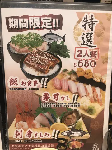 见到OpenRice有预付套餐做优惠,就买咗个二人餐谂住试试。本身都唔算好大期望,因为都觉得呢啲套餐唔会比咩好嘢你食,同埋份量会细,所以觉得都还好,质素符合意料之内,反而意外嘅系比想像中食得饱。套餐所有嘢一次过上晒,寿司然后沙律之后刺身 ,两个丼饭同面豉汤,都系5分钟内上齐晒。其实呢个食评都唔知写乜好,所有嘢都正常普通,唔好食亦都唔难食,无野值得highlight或者批评。唯一嘅意见就系所有嘢同时上,枱会有少少迫。然后有个丼饭系鳗鱼饭,如果可以食咁啲嘢先上就唔使摆到冻晒,同埋鳗鱼饭个饭照用寿司醋饭,有少少奇怪,可以转返普通白饭会更好。可能好多饭嘅关系,食晒都好够饱。