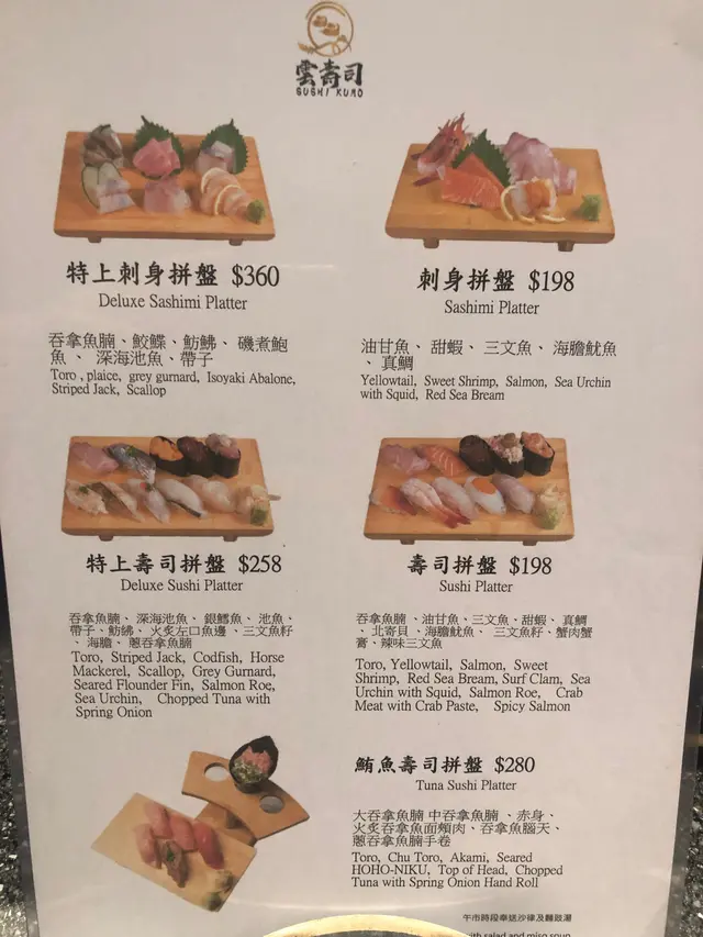 朋友和我都十分喜歡吃日本菜。適逢今天在銅鑼灣,知道這間日本壽司餐廳經常排長龍,今天時間尚早,人流不是太多,我們立即入內!店舖不是太大,格局與一般壽司店差不多,看着壽司師傅即場製作,彷彿置身於日本東京小店吃壽司一樣!我選了特上壽司拼盤。拼盤有:吞拿魚腩、深海池魚、銀鱈魚、池魚、帶子、火炙左口魚邊、三文魚籽、海膽魴鮄、蔥吞拿魚魚腩。吞拿魚腩、深海池魚、銀鱈魚等質地鮮嫩,口感細膩。池魚和帶子充滿了海鮮的甜味,讓人愛不釋口。火炙左口魚邊有燒烤風味,蔥吞拿魚魚腩很軟綿,吃著有豐富的口感層次。朋友選了北海丼。有吞拿魚腩、油甘魚、帶子、左口魚邊、海膽、三文魚、三文魚籽。吞拿魚腩和油甘魚都有豐富的油脂,很鮮甜美味。帶子和左口魚邊則很鮮嫩。海膽充滿奶油味及帶著濃郁的海洋風味。加上三文魚和三文魚籽,整碗丼飯十分出色。這間餐廳果然名不虛傳,食材十分新鮮,每一件海鮮都十分好味,米飯煮得香甜軟糯,怪不得長期客滿,還得到米芝蓮推介呢。不是誇張,我已經心思思想定下次再到雲壽司吃壽司了。查看更多