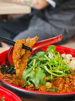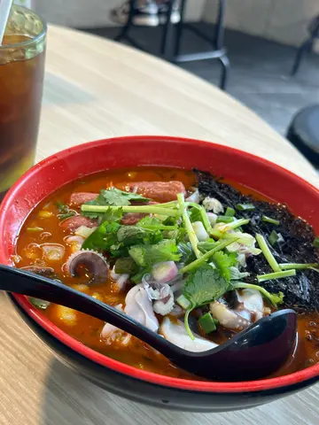 check out this iconic affordable mixian spot if ur in tsuen wan/ yuen long! famous for their sour-spicy & mala broths, but dw if u can’t handle the heat like me. their clear broth is comforting as well喺荃湾元朗嘅朋友可以试试呢间人气米线店。佢哋嘅酸辣同麻辣汤底好出名,但唔食辣嘅我,极力推荐佢哋嘅清汤底🐔chicken seaweed mixian鸡丝螺旋草米线loaded w shredded chicken & seaweed, v stuffed lol. i also added extra squid heads and fish paste spring rolls超足料,食完劲饱,仲额外加咗墨鱼头同鱼肉春卷,好味!🐷pork chop mixian 猪扒小窝米线tender and well seasoned but slightly too fatty for me猪扒煎得够入味够嫩,不过比较肥🥓grilled pork neck 秘制猪颈肉sooo juicy. the thai style sauce is so addictive烧得微微焦香,juicy又惹味,必食!跟嘅泰式辣酱好上瘾🍹chrysanthemum honey 菊花蜜🥤salted lemon sprite 咸柠七…查看更多