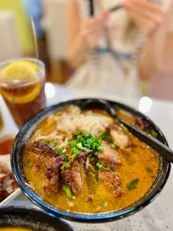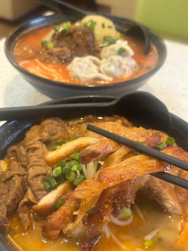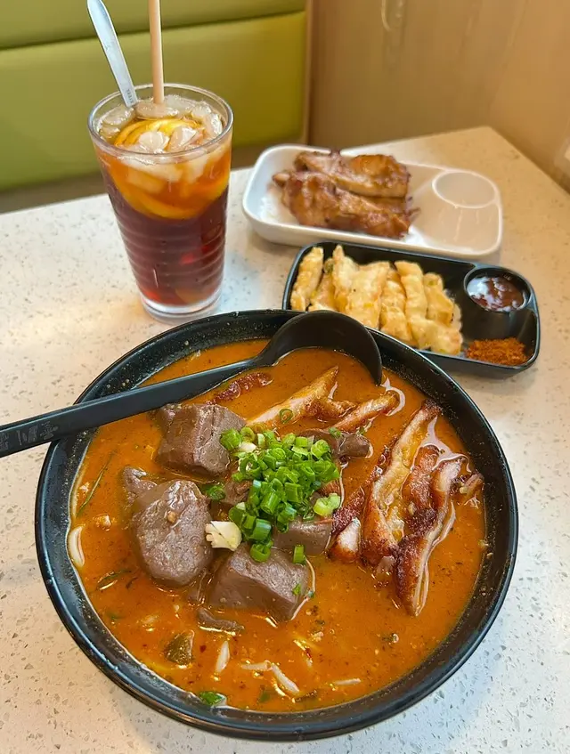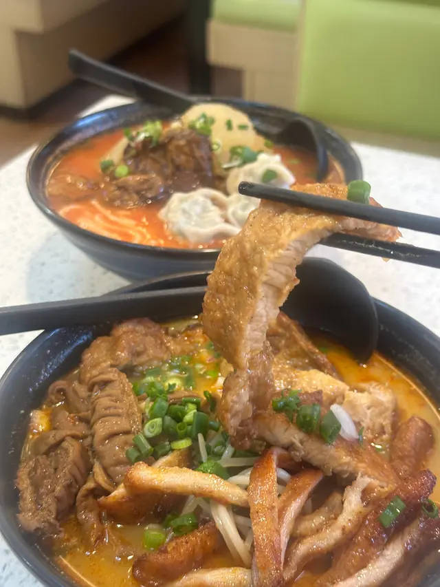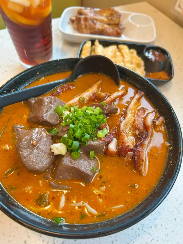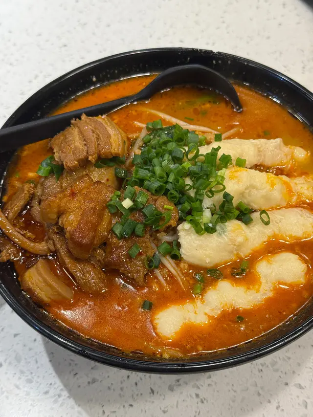 洪水橋美食|雲川百味 米線料多到滿瀉!洪水橋呢間米線專門店真係抵讚!分量超足,料多到幾乎遮住米線,食得超過癮~ 麻辣湯底香氣衝鼻,辣度夠勁又唔嗆喉,配爽脆多汁嘅豬頸肉簡直絕配,吸晒湯汁越食越上頭!南乳雞翼鹵得超入味,南乳香好濃,外皮微脆,肉質嫩滑,吮埋骨都有滋味~鍾意清鮮口味嘅必試豬骨湯!湯底熬得鮮甜醇厚,飲落好滋潤。豬扒嫩滑唔柴,吸晒湯底精華;黑魚片薄切透光,入口爽滑無骨,鮮味十足。仲有鹵得軟糯嘅豬大腸,唔腥又夠味,墨魚餅彈牙多汁,每款配料都好出色~ 出餐快、味道正,附近街坊想食飽肚又惹味嘅米線,呢間實唔會失望!…查看更多
