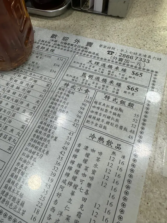 餐廳位置灣仔修頓球場對面,地鐵站B出口對面即係,都幾容易見到!我今日大概22:00到,估唔到客人都幾多,餐廳開24小時,有多款不同既快餐,食物款式亦都多元化雲南酸辣米線,我叫左3個餸,$48,大部分既餸都係$7起,價錢方面我自己覺得都係合理。豬紅好入味,加上米線一齊食 都夾!而且都多,有7-8粒!豬頸肉本身就係炸既 有薄薄既炸粉 味道整體上都幾好 豬頸肉充滿油香 配埋酸辣湯更加美味!湯底酸辣亦開胃,唔會太咸!整體來講都值得推介!查看更多