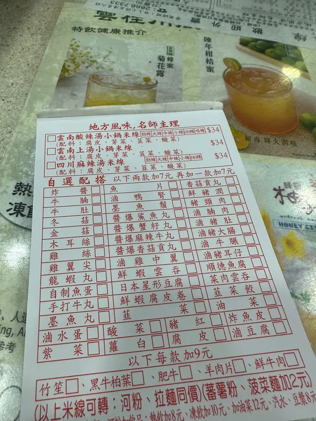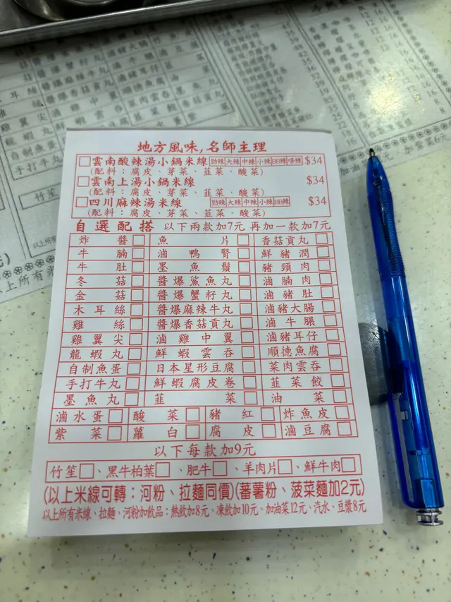 雲桂川風味米線 Wan Gui Chun Flavor Rice Noodle📍灣仔軒尼詩道107號地舖平日放工,一心諗住同朋友去食灣仔嘅手工餃子,點知未夠七點就已經滿座,門口仲有人排緊隊,呢個情況下,我哋當然係立即轉plan啦。可能正值晚餐時段高峯期,間間餐廳都無位,附近嘅冰室早排先食完,所以揀無可揀,我建議去食粉食麵就算。醒起平時放工搭巴士見過有間叫雲桂川嘅米線舖,仲有一兩檯吉檯,我就同朋友轉場去食。[價錢 Price] 💰$34 (加$7有兩款配料)雲南酸辣湯小鍋米線 🍜店舖有提供配好料嘅飯麵套餐,亦有類似車仔麵叫餸嘅認識,自選不同配搭,自由度都幾大。我同朋友都想自己揀配料,所以就拎咗張紙嚟填。湯底口味方面,有三款供以選擇:雲南酸辣湯小鍋米線、雲南上湯小鍋米線同四川麻辣湯米線,跟湯附上嘅配料都係離不開腐皮、芽菜、韭菜同酸菜呢啲啦。食客可以自選辣度,叫唔辣食清湯都得,同一價錢都係$34,喺軒尼詩道大街嚟講,算係好貼地嘅價錢。佢哋提供接近50種配料,有啲要加錢,但大部份都係加$7就食到兩款,價錢方面真係贏咗好多人。好可惜嘅係,佢嘅味道同賣相都令我哋大失所望,一心以為雲XX嘅米線就係被人吹奏得好勁,話世一嗰種,點知會同想像中咁大出入。首先講下個湯底同附有嘅配料,每樣都失去咗原有嘅味道,腐皮無豆味,韭菜無香味,精髓酸菜酸都唔酸下,口感仲唔腍唔爽,有少少奇怪。雖然唔會好似食完連鎖米線店啲重味精米線咁口渴,但呢個湯底毫無層次,我哋叫咗BB辣,只係睇到少少辣油浮面,但完全食唔到辣味同酸味。其次係份量,我都出晒名係細胃王,但食完成碗我都仲想食返串燒賣充飢,可想而知米線量係有幾多。只想配搭方面,我揀咗滷豬耳仔同滷豬肚,而朋友就揀咗豬頸肉同鮮蝦雲吞。我會揀晒兩種滷水因為我一向認為呢類雲南米線舖頭,煮呢類食材會好食啲。問心個句,其實佢嘅滷水味唔差,兩款配料都好入味,但豬肚實在太腍,腍到無晒口感,不過豬耳就還好。朋友叫嘅鮮蝦雲吞都好大粒,蝦肉都叫彈牙,拖尾亦做得幾好,但就無咩味道,而且只有兩粒,有少少唔夠喉。全場唯一可以讚得落口嘅,應該只有豬頸肉。我未食過呢種味道、呢種口感嘅豬頸肉。佢望落有少少似切咗件嘅炸豬扒,而表皮的確係因為落鑊炸過所以有少少香脆。我哋都幾欣賞佢嘅口感半腍半爽,恰到好處,調味唔會過份重手,食到少許豬肉本身嘅鮮甜,有少少驚喜。總括嚟講,呢度食晚餐價錢真係平通街,不過整體食物質素有待提升。如果糧尾無錢開飯,嚟呢度食返碗米線都應該可以頂到餓一陣,不過可能要再食少少宵夜囉。查看更多