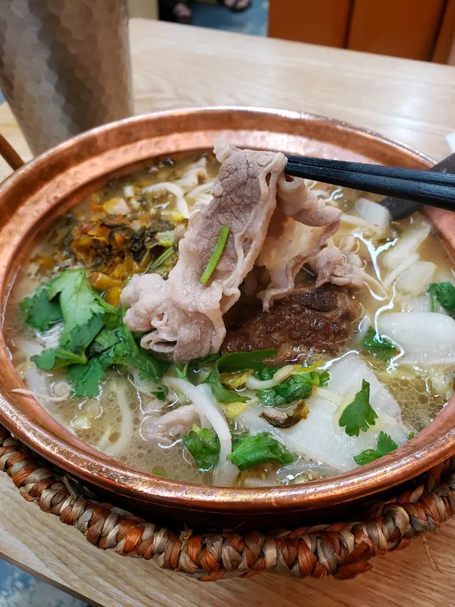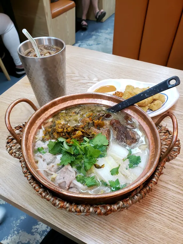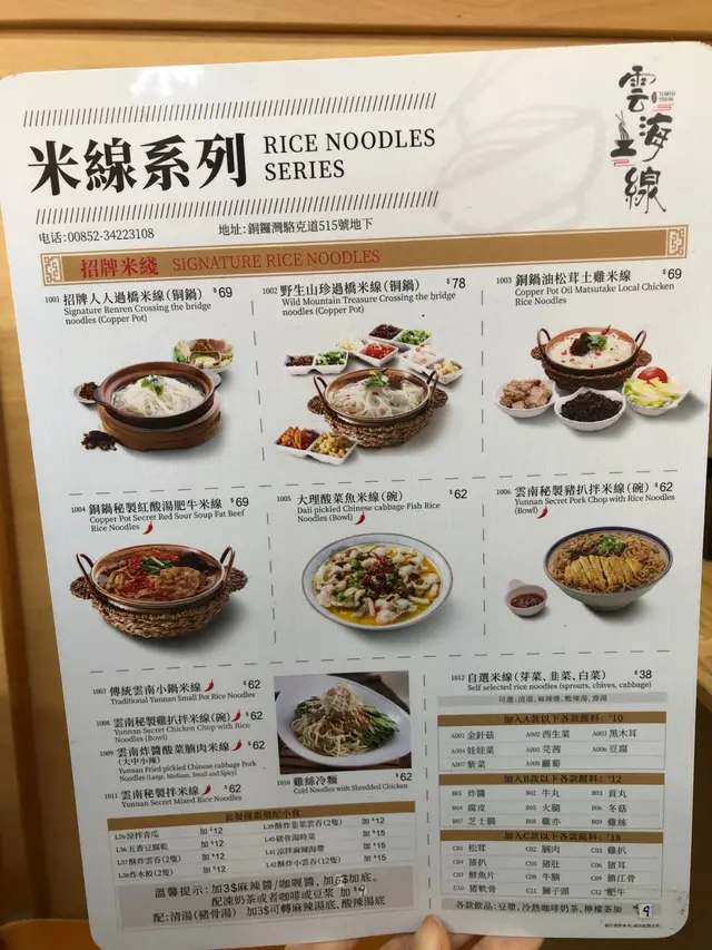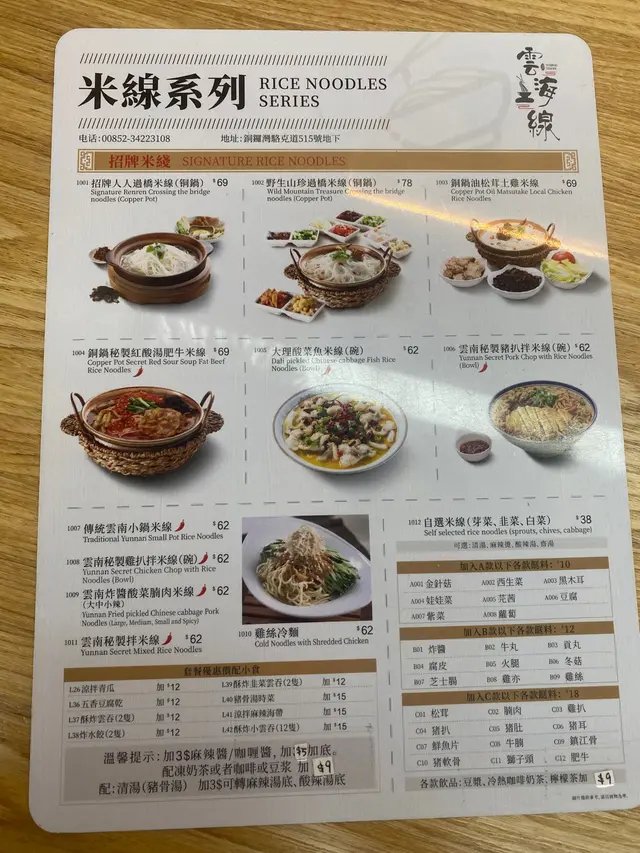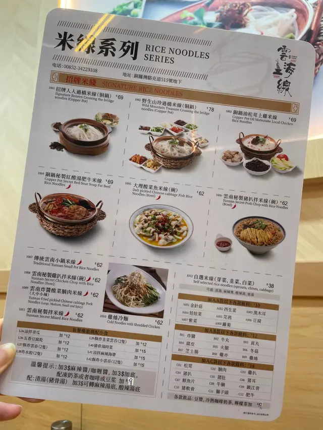 今天約了朋友去銅鑼灣行街睇戲,到食晚飯嘅時間,朋友話附近有間好食嘅米線店,咁就一於去食,米線店叫雲海一線,位於銅鑼灣駱克道513-515號永勝大廈地舖,港鐵銅鑼灣站 D 出口, 步行2分鐘就到,非常方便。 米線店門口的招牌都好光亮,一眼就望到,內裏裝修雖然簡約,但光猛整潔,檯椅以卡位為擺設,坐得令人舒服。餐牌內的食物選擇都多,有米線系列、特色飯食、酸辣湯/小雲吞、特色小食及飲品,主打係米線系列,大部份米線係用銅鍋盛載,保持溫度和特色傳統,真的不錯。 米線系列就我叫了大理酸菜魚米線,魚肉份量都幾多塊,口感又佳,魚肉醃得幾入味,湯亦唔鹹唔淡,亦好有酸菜味,而且食落唔會好辣,米線份量都好足夠,米線與湯都好夾,完全吃岀湯嘅味道,整體配合很好。我朋友就叫了傳統雲南小鍋米線,米線係用銅鍋盛載,熱辣辣,份量不少,有很多片豬肉、火腿、娃娃菜、芹菜、芫荽、香蔥、金菇等,豬肉嫩滑又有肉味,湯底甜酸再加點辣,又不會太油膩,米線亦煮得不會太淋,剛剛好,好夠口感。 小雲吞系列我哋就叫咗砂鍋菜肉雲吞,又是用個銅鍋盛載,來時已聞到香味,亦熱辣辣,雲吞有成8隻,都大大隻,皮滑餡好味,個湯不辣亦不鹹淡,所以連埋個湯食非常好食。特色小食就叫咗酥炸豬扒同甜品豆沙餅,酥炸豬扒是好食小食,經過油炸處理的豬扒後,外皮香脆好食,並帶有豬肉的鮮美味道,搭配埋醬汁,惹味好食。甜品豆沙餅亦外脆內香甜,味道又唔係好甜,真係唔錯嘅甜品。飲品方面,我哋每人都叫咗一樣,凍西洋菜蜜同凍檸檬茶,亦好配合食嫩嘅食物,飲完覺得好涼快。雲海一線真係好值得推薦俾大家,食得好滋味,又好抵食,價錢有大眾化,我哋下次都會再嚟食米線系列,因仲有好多款式嘅食品。…查看更多