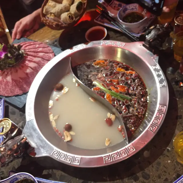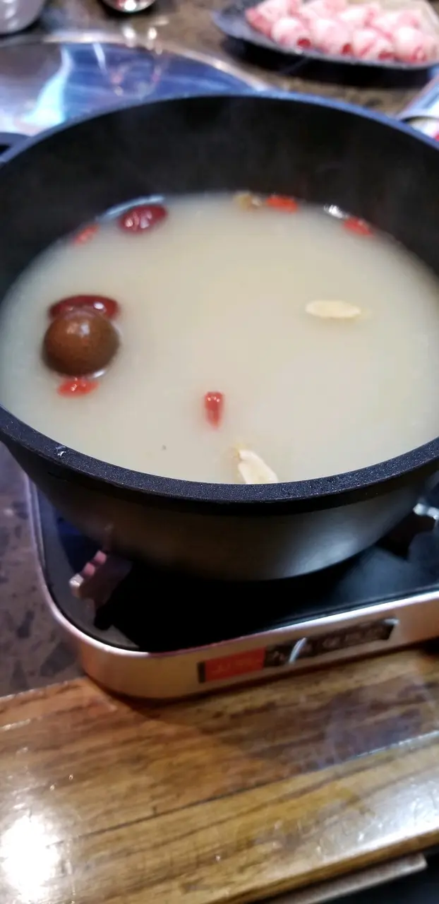 又隔了多月,係時候聚聚了……戴生戴太話朋友推介呢間,大家都想試吓,我未試過……六點幾到了,這裡不大,枱數座位不多,好彩今晚book咗有位……今晚同一時間客人吾算多,冇人等位,但走一枱,又嚟一枱……我地點了清香藥膳鍋湯底,幾清香好味,之後點了豚肉,牛肉,餃,丸類、紫菜響鈴、鴨血、土豆片、萵笋片等,每樣都好味,呢度每人會比樽特製麻油你蘸點……但麻油味不是太重……食到差不多,佢哋送咗個紅糖糍巴比我哋,我覺得幾好食,熱辣辣,咬感似咸水角,但內裡是冇餡,可蘸點紅糖水食,幾特別………查看更多