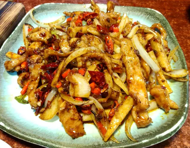 好鐘意好鐘意食雞煲,特別係天氣涼浸浸更加鐘意食呢啲熱辣香口野。今日去完新都會廣場睇完戲就落去葵涌運動場附近搵野食。呢間震陞雲南美食原來唔只係食雲南米線,仲有小菜可以叫。我地幾個朋友都想食啲辣野暖下胃,叫左一個雞煲,上枱炸炸聲,食落又香又辣好惹味,仲有啲雞都好多件架,佔左個煲嘅7成都有!除左雞煲仲叫左碟椒鹽鮮魷,好鐘意食呢個餸,因為外面脆入面軟好好食,上面亦都灑左啲金蒜好香口好脆。最後呢個啫啫通菜煲都超香,熱辣辣好好食!查看更多