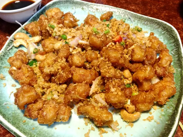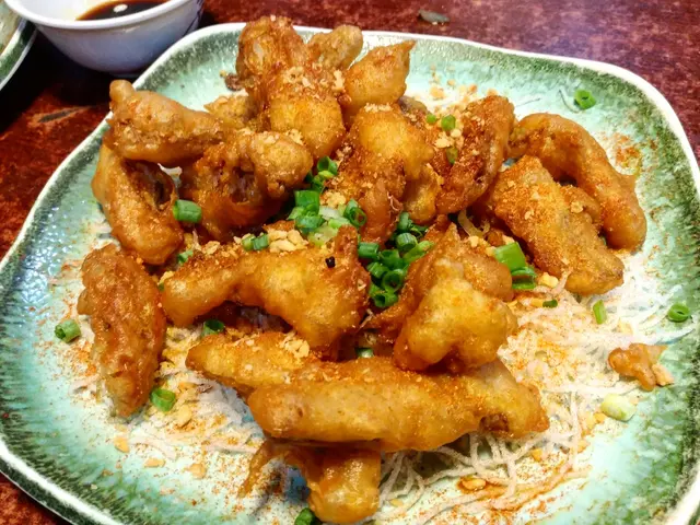 和好朋友們一行八人在葵興觀賞完香港首個長壽音樂劇“我們的青春日誌”後,朋友忽然想吃大排檔,就用OPENRICE搜尋附近有沒有,發現葵芳有震陞,朋友二話不說就打電話查詢有否八人座位。餐廳老闆回覆替我們即時留起,也告知我們是連著卡座的位置,而且也不用我們留電話,採取相信客人的本意。👍餐廳分開兩個鋪位,其中一個是圓枱為主,另一邊就是冰室茶餐廳的格局,我們被安排後者,餐廳燈光光猛,枱面乾淨,只是餐牌有點痴立立油漬相較多,是今餐飯唯一需要注意的地方。食物質素方面優班,吃到我們每一個人都十分滿意,特別推介下面幾道小菜:❤️震陞小炒王用上乾魷魚條,鮮魷魚塊,”九”菜,腰果,加上辣椒一併炒,很滋味,用來送飯一流,連席上的兩位小朋友都讚不絕口。🥳🧡酥炸蠔餅這個蠔餅和我平時吃的不同,這個用上大量炸粉,加上為數不少的小蠔粒,吃落口感輕盈,這個一百分👍👍其餘的小菜也相當不錯,可能自己很少去大排檔,不太熟悉特色菜式,我對一個菜式很印象深刻,它就是就是涼拌魚皮。💛口感特別,凍的吃法確實第一次嘗試,拌著辣汁很滋味,點了辣汁升華了味道,無點就很清新,魚沒有腥味,讚👍附上其他點了的大路菜式:題外話:因為滿桌都是食物,我們又希望把最後到來的烤魚放置枱面的中間位置,告知老闆我們的想法,他親力親為,二話不說地請我們其中一位靠近門口的朋友離開座位以免滾燙受傷,然後迅速把一個新爐放在中間,再放回烤魚盤,確實很細心呢,絕對是加分位。😃🪄查看更多