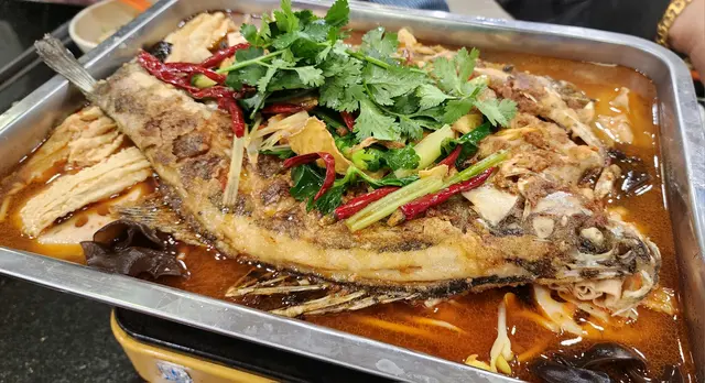 家庭聚會食慣酒樓想食番啲 有鑊味 餸菜若是去咗 葵芳 附近d 打冷大排檔 試下會唔會有特別啲 嘅食物招牌菜 麻辣烤魚魚都幾大條 足夠五至六人食配料有腐竹蓮藕 木耳 芽菜條魚係烤得幾香 而且肉質唔梅 有口感但要留意 條魚上嘅時候唔係太熟需要烤多幾分鐘先食得麻辣雞翼每一隻雞翼都係炸得好脆 口感好好唔算太辣 而且有少少麻嘅感覺送飯都係唔錯嘅選擇咸魚雞粒炒飯呢個炒飯 應該係成餐最好食嘅廚師炒得好夠鑊氣分量都好多 肉粒都幾多屋企人話好好味最後忍唔住叫咗兩碟整體都唔錯 雖然係大排檔不過服務都算周到查看更多