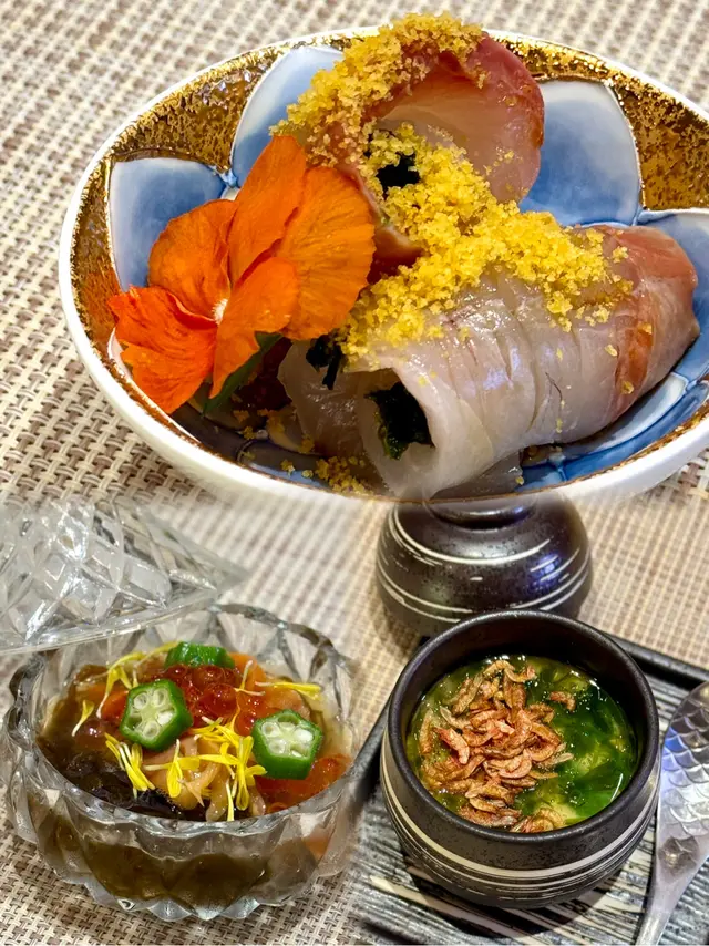 [ 霜瀛 ]呢間壽司刺身Omakase店1年前由上環搬去尖沙咀,人氣依然強勁!最近晚市做緊第2位第3位半價優惠、酒精飲品第2支半價。晚上9點前仲可以無限追加手握壽司😲!✿ 「櫻」廚師發辦晚餐+壽司追加放題 $1680/位套餐有3款先付、蒸蛋、3款日本生蠔、6款時令刺身、季節料理、10貫手握壽司、吸物、甜品拼盤。3款先付🥢當晚前菜係芥末湯葉、三文魚籽豆腐、汁煮東風螺,清新開胃。 蒸蛋🥚茶碗蒸加入櫻花蝦、香菜等材料,蒸蛋嫩滑帶鮮味。3款日本生蠔🦪當晚款式分別係 岩手縣米崎蠔、兵庫縣武士蠔、岩手縣令和之怪物。生蠔體型、肉質、口感和搭配都有不同,唯一相同係生蠔夠新鮮。6款時令刺身🐟🍤當晚刺身有 間八魚、活赤貝、煙燻鰹魚、拖羅蓉海膽最中餅、甘蝦、北海道白粟米。間八魚捲住海草再配烏魚子,魚肉爽脆帶烏魚子鹹香,鮮味更上一層;鰹魚用上日本木煙燻,相當打卡!鰹魚魚皮燻得微脆,金箔與昆布醬增添奢華感及味道層次;拖羅蓉海膽最中餅,海膽濃郁與拖羅油脂夠哂滿足。 季節料理🧫慢煮鮑魚配鮑魚肝醬,鮑魚煮得軟嫩卻不失彈性,濃郁肝醬及山椒葉香氣讓整體風味更立體。 10貫手握壽司🍣當晚款式有 魴鮄魚、金目鯛、赤蝦、帆立貝、深海池魚、葉血引、金線鯛、銀鱈魚、拖羅、北海道馬糞海膽杯,全部魚生都新鮮厚切。除咗有火炙壽司,調味方面各有特色,會配搭柚子胡椒、黑/白松露醬、烏魚子粉等。⚠️最重要係晚上9點前仲可以免費無限追加手握壽司(除咗海膽)😱😱!吸物🥣清澈高湯有舞茸菇、蓴菜,飲完暖胃。甜品拼盤🍐🍨有日本蜜瓜同埋雪糕。提早預訂更可免費升級甜品拼盤,慶祝節日一流。總結🫦 Omakase食材新鮮日本直送,手握壽司仲可以免費無限追加!而且有好多優惠做緊,性價比夠高。✿✿✿✿✿✿✿✿✿✿✿✿✿✿✿✿✿✿✿✿✿✿✿✿✿✿霜瀛地址:尖沙咀金馬倫道33號The Cameron 1樓102號舖電話:3188 8007✿✿✿✿✿✿✿✿✿✿✿✿✿✿✿✿✿✿✿✿✿✿✿✿✿✿…查看更多