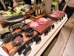 露台餐厅逢星期一至四的自助餐,一直在做4送1优惠难得今天凑到8人来个午间聚餐,当然首选露台呗😆😬本有心埋准备,餐厅会跟其他酒店自助餐一样,做了优惠折扣,都会「将货就价」好惊喜😍无论食物供应、质素、补充都没有怠慢👍🏻感觉熟食较以往星期五的lunch buffet还要更多选择呢!而且更合我口味😋不惭为5星酒店餐厅优惠价下的牛扒竟然是牛柳😍早两次的大小周末都没有最爱的西冷🥩只有让我有点小失望的牛肋排呢!不嗜血腥的我😅厨房每次多忙也乐意为我把牛排🥩烹至8-9成熟,再给我端上桌🥰难得还要有厚切、牛味浓郁的牛舌👍🏻日式寿司放盘处,竟然有我爱吃的日式章鱼烧和烧比目🤩甜品分别不大,但最惊喜是以往只有周末、日才供应的Canele 可丽露,现在weekday都有👏🏻😋😋😋 要常来了🤣虽然今日还有日常甜品区少有供应的蝴蝶酥,但口感完全不酥脆,所以甜品控就不需浪费quota😆重点要批评的,就只有冻海鲜的长脚蟹了,噢!让我嗜海鲜的朋友们非常失望,首先蟹肉不细嫩难离壳,又欠缺应有的鲜甜多汁,希望餐厅会改善但综合来说,整体食物质素仍然可取,服务当然也是不用怀疑的「好」4送1的优惠下,连10%服务费,平均$618.75,等同75折,好划算了😌