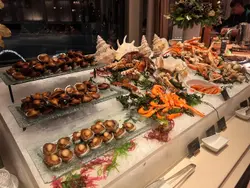 老实讲,你系望性价比高多款式嘅呢间餐厅可以完全唔使考虑,晚市1150加1之后买三送一,平均每人950虽然呢个价钱对于半岛呢个名系值嘅,但系啲嘢食种类真系唔多,回本位甚少,食物质素收货嘅,但系冇咩惊喜,刺身有三文鱼吞拿鱼带子象拔蚌、冻海鲜有蟹脚鲍鱼青口冻虾、热食只有约20多款,威灵顿三文鱼外皮唔够酥脆,牛扒质素算几好,但系如果食唔惯太生嘅人完全食唔惯,老实讲回本位除咗鲍鱼冻海鲜同埋牛扒,真系冇其他,老实讲收我呢个价钱唔紧要但系都要俾多啲回本位,呢个价位冇生蚝鹅肝拖罗真系唔收货,甜品就真系算几出色所有甜品应该都系自家制,最后餐饮每人只包一杯茶或咖啡,如果点果汁都要另外收费,老实讲我俾得呢个价钱连嘢饮都唔系任饮真系争啲,我当日去基本上都系得10台8台左右,讲真如果喺外边食其他酒店我谂五六百蚊应该都已经有呢个质素同更多嘅食物种类,价钱有一半其实系落咗去半岛呢个名𠮶度,老实讲都唔会去第二次