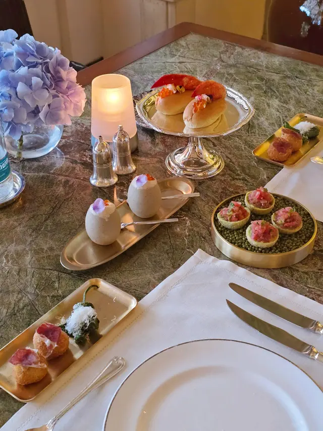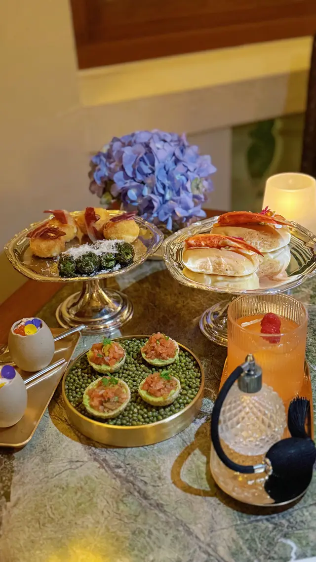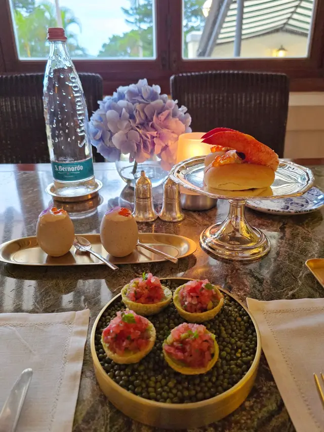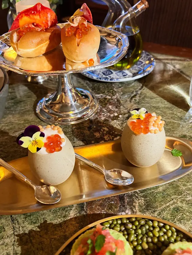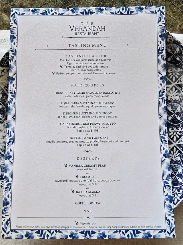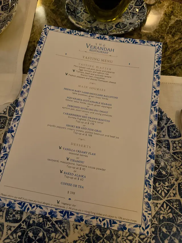 淺水灣露台餐廳絕對係慶祝約會首選!環境復古浪漫又高雅~喜歡影相打卡可以去埋餐廳內園中庭位置,旋轉樓梯高掛復古花型吊燈,氣派盡現~最近The Verandah有新西班牙主廚坐鎮,推出全新tasting menu $598 起~TASTING PLATTER🔸迷你龍蝦包麵包size 剛好龍蝦啖啖肉食到龍蝦鮮甜味🔸 吞拿魚沙律蛋泡沫佐三文魚子個foam勁香tuna味有三文魚子好鮮🔸 番茄、羅勒與酪梨塔塔(素)口感好fresh 🔸 伊比利火腿可樂餅/ 西班牙青椒配刨絲帕瑪森起司(素)可樂餅脆皮creamy 加埋火腿有d咸香,旁邊有小青椒唔辣,刨上芝士碎又幾好味MAIN COURSES🔸 去骨乳豬磚 (配杏桃果醬、洋蔥+小馬鈴薯)切開脆皮乳豬磚,一絲絲豬肉絲化開非常軟嫩🔸西班牙紅蝦燉飯 +$ 198每一啖燉飯都食到滿滿紅蝦鮮味,米粒質感剛好有咬口,加埋布拉塔芝士同魚子增添creamy鮮味Dessertbaked Alaska 火焰雪山 +$60服務員即席燃點火焰烈酒,驚喜係酒令到整個甜品好香,雪糕同蛋白霜完美結合,可以話係我食過最好味火焰雪山TIRAMISU提拉米蘇 +$40Tiramisu超大杯, mascarpone芝士非常軟滑,咖啡味香濃又帶點酒味飲品就選擇左Hot latte 同hot mocha,正常發揮!…查看更多