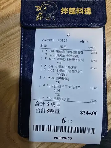 年年都去利东街同蓝屋睇灯饰,以前返过一年工,经过电车路,都无试过呢间。原来里面除左拉面之外,好多特色面食,样样都好吸引,今次终于得闲露下面啦!虽然呢度叫拌面料理,不过我地今次未试拌面,叫左两个套餐,都系汤面,原来又几正。睇下餐牌呢个灯真系好正!嫩鸡白布汤阔面$72望住个样,感觉佢系店内其中一种招牌𰻞𰻞 (BiangBiang)面,令味道变得温和,而将上海嫩鸡煨面混合嘅Fusion。大量小棠菜加嫩鸡丝嘅汤底。因为加入花奶,配上滑溜煮得时间适中,又好似馄饨皮嘅白布宽面,汤底顺滑好好饮,又唔会太多淀粉感觉,所以比上海版本清爽好多,唔怪得咁多人都叫。牛骨饺子面套餐 $88牛骨汤面虽然一样系白色,但佢有牛杂舖清汤嘅味道,真系牛骨汤,面似爽滑嘅米线。碗面有好足料,有四大块牛骨,多肉又入味,咬落似牛腩口感,唔会好似煲汤肉咁太瘦;仲有两大块入味软腍嘅白萝卜,真系相当抵食。4只韭菜饺 店内有白菜同韭菜饺拣,因为唔可以叫鸳鸯,所以试下姐姐推介嘅韭菜饺。韭菜饺真系饺皮薄靓,馅料食落好多韭菜又唔会太肥猪肉。呢度特登分开上,等大家唔局限一定要浸汤,都可以点醋同辣椒,食法多元又清新!🥟巴蜀口水鸡 $58口水鸡无芫荽葱,不过难得好多炸黄豆够哂爽脆,打开有一大只鸡髀,大块又滑,辣油最初唔辣,之后慢慢有辣度出嚟,好有层次感🌶️。 西施炖蛋 *热个炖蛋滑得嚟完全无气泡,睇得出好细腻嫩滑,味道唔太甜,真系好似西施咁正🍮!不过食完辣嘢,麻痺左味觉,加返少少甜,我地应该可以试到多啲层次!香茅香水柠檬茶 +$16清新柠檬酸甜,再配香茅,味道层次丰富又解腻,虽然比平时买到嘅甜,不过因为有叫辣嘢,所以适合。巨峰提子茉莉果茶 +$10清香融合巨峰提子果香,口感舒爽怡人,系另一个好选择。总数:$244…查看更多