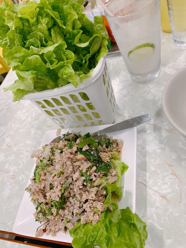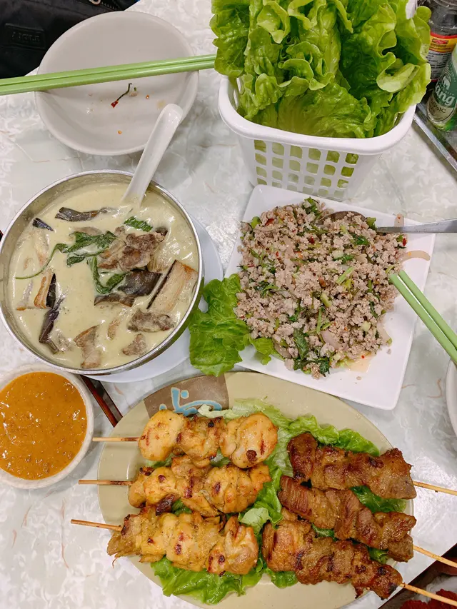 熟食市埸装修左年幾,仍未搞完,駁左條樓梯可地鐵站直達一樓,見到呢間泰菜,即本試下!泰國人主理,睇菜譜啲菜式密麻麻,眼都花埋!點左泰式芥蘭牛柳,飛天通菜,炸蝦餅,鳳爪沙律,黃咖喱蝦,鐵板蠔,串燒(豬/雞)10串,炸軟殼蟹,芒果糯米飯,餐後送每人一件綠豆榚,前後隊左5支象啤,三五知已,聚餐氣氛一流,埋單唔先一仟蚊!總括黎講,全店泰籍人士主理,食物同價錢成正比,事頭婆幾nice,其他妹妹仔工作勤快,用餐愉快!註:熟食市埸装修之後,的確干净美觀左,不過冇冷氣始終係一缺點,秋凉天會比較好啲!:)…查看更多