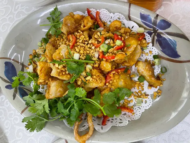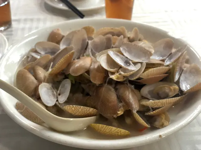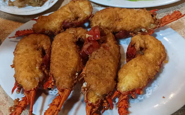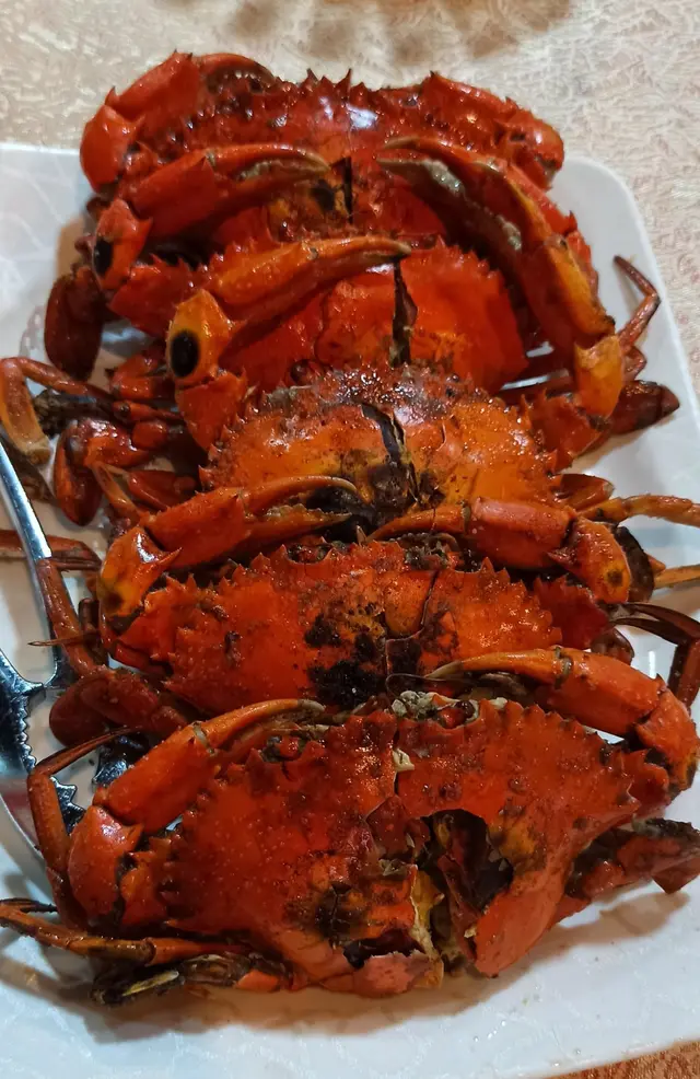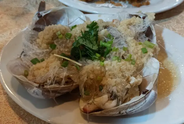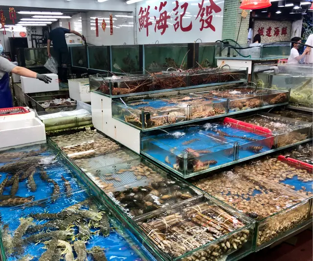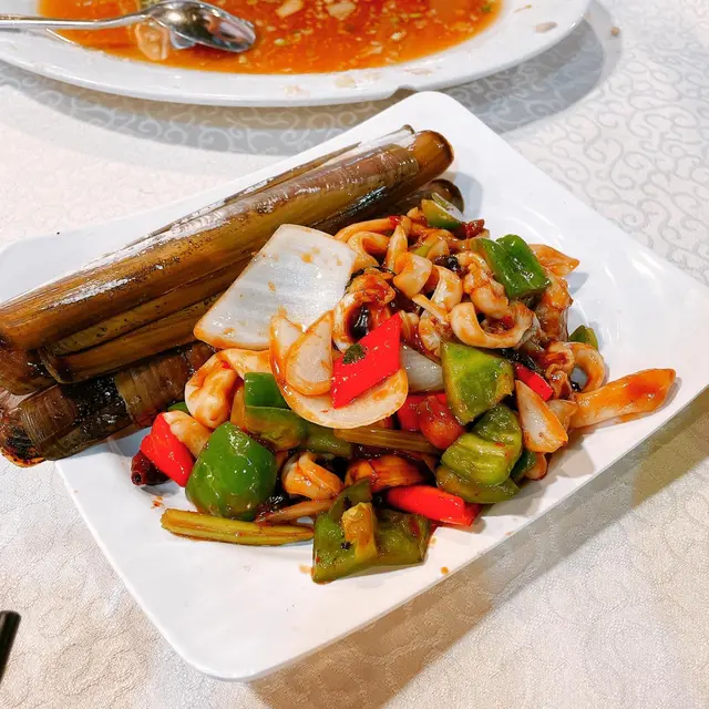 復活節節與家人到三聖邨食海鮮,一行14人此餐廳有大枱所以就試試這間.在尚記買了3.5斤斑(一鱼2食,西芹炒斑球,魚腩就炆煮),黃油蟹(鹽焗),九節蝦(白灼),蟶子(豉椒炒),店內再叫了椒鹽鮮鱿(太好吃叫了2碟