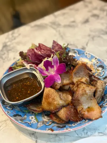 仲要等多几个月先可以飞泰国,耐不耐就好挂住泰国啲美食😌啱啱去完旅行返黎懒得煮饭,趁住今日放假就去旺角食我成日都去食嘅泰菜「青花」😉餐厅环境就好似置身于forest入面,仲有多款特色嘅𩠌菜例如用蝶豆花炒饭系出面比较少见架👍🏻建议大家黎食记得要预早book位,因为成日都爆场架👍🏻鸡皮卷呢款系我每次必点嘅小食,炸到脆卜卜又薄身嘅鸡皮入面包住鸡肉,咬落去嘅时候会一啖爆汁好juicy😋鸡肉鲜嫩多汁配上泰式辣酱酸酸辣辣,劲惹味又香口,绝对令你食唔停口炭烧猪肉串烧沙嗲一碟分量有6串,平均只系12蚊串几抵食👍🏻入口有阵阵嘅炭烧香气,猪肉肉质软腍,外面焦香内里多汁,加上香味浓郁嘅沙嗲酱简直系绝配😋马莎文香料牛肉咖喱份量惊人😆系一大碗嘅咖喱,足足可以四至五人分享👍🏻牛肉用上肥牛片,肉质较为软腍,加入大量蔬菜:莲藕、茄子、秋葵、腰果、薯仔令咖喱带有蔬菜嘅清甜味,咖喱香而不辣,所以一定要嗌蒜蓉包去点咖喱汁,一滴都唔好浪费😆蒜蓉包香脆松软,上面搽满香味浓郁嘅蒜蓉酱,配上咖喱汁真系Perfect👍🏻蓝蝶花蟹肉菠萝炒饭菠萝炒饭就食得多😆用蓝蝶花去浸泡米饭,令米饭变成紫蓝色,再铺上大量蟹肉、提子干、鸡蛋同菠萝粒,可以自行再加入肉松同腰果令口感更加丰富👍🏻蟹肉嘅鲜味、加上提子干嘅微甜啱啱好中和返菠萝嘅酸味、肉松咸鲜嘅味道配搭埋腰果香脆嘅口感,味道层次更加提升😋📍青花 (旺角)旺角奶路臣街17号THE FOREST 1楼107-108号舖人均消费:$200-300食物:⭐️⭐️⭐️⭐️⭐️环境:⭐️⭐️⭐️⭐️⭐️服务:⭐️⭐️⭐️⭐️⭐️回头率:⭐️⭐️⭐️⭐️⭐️…查看更多