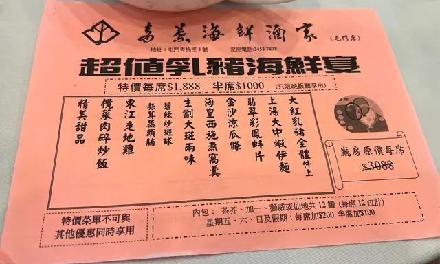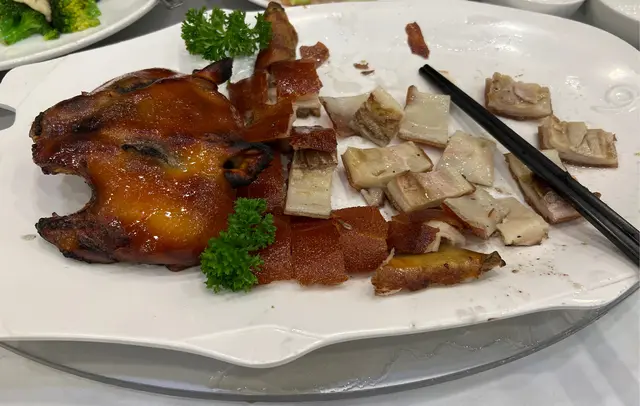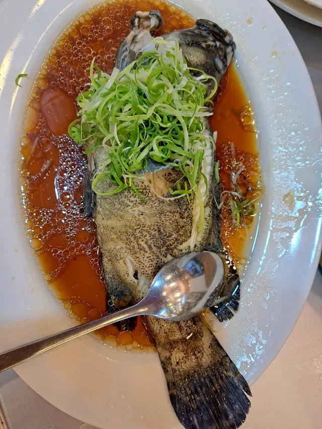 父親生日,喜歡到酒樓食飯慶祝,樓下這青葉海鮮酒家是我們經常飲茶飯聚的地方,職員服務很好。這餐我們叫了 菠蘿咕嚕肉,北京烤鴨兩食,鴨肉炒茄子,大蝦芝士伊面,清蒸細龍躉,香芒炸蝦球,每樣菜都份量十足,5個人埋單連酒水才一千元多點,很抵食。大蝦芝士伊面,芝士味十足,好食。烤鴨職員會即場切,皮很脆入味,好食。魚火喉剛好,雖然唔大條,但也夠食。鴨肉炒茄子,鴨肉就唔太中意,茄子唔錯新菜色芒汁蝦球,口感清新,好食。冬瓜盅88蚊,很大盅,每人也夠飲幾碗,味道清甜。每次黎必嗌,新鮮菠蘿,香脆既肉再淋上酸酸甜甜的醬汁,我們都很喜歡這道菜。片起來也很多,208一隻 加40蚊有兩食。…查看更多