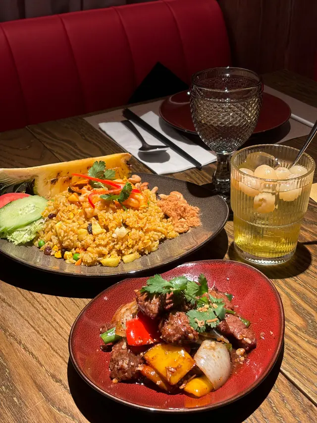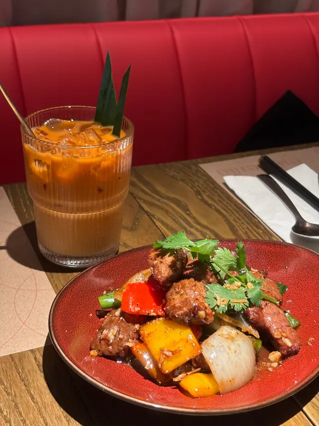 铜锣湾新开了家超棒的泰国餐厅🍴,性价比简直绝了~这家ChinChin泰餐,在大陆就挺火,连锁店到处都是,现在终于来香港啦👏。店里装修蛮高级的,情侣约会超合适,拍照特别出片📷。📍地址就在铜锣湾轩尼诗道500号希慎广场3楼,香港ChinChin (铜锣湾) 哦。他家套餐超划算,有双人的,也有适合4-5人的。套餐菜单在图片p9里,大家可以瞅瞅~🥗泰式粉丝海鲜沙律,里面的鲜虾仁和牡蛎又大又多,味道很正宗,吃起来酸辣开胃,超赞!🦐炸虾饼咬一口,虾肉紧实弹牙,特别香,再蘸上配的甜酸酱,绝了~主食强推👇🥩铁板黑椒牛柳粒火候刚刚好,牛柳特别嫩,黑椒味也浓郁。🍍菠萝海鲜炒饭里海鲜不少,饭粒干爽,还有菠萝的清甜,好吃!最近香港天慢慢热起来了,来杯龙眼冰,清甜解腻,里面还有Q弹果肉,喝着太舒服啦。泰皇地道奶茶点少甜就行,茶香和奶香搭配得不错。吃完主食,再来块铺满焦糖碎核桃的提拉米苏蛋糕,口感超丰富~查看更多