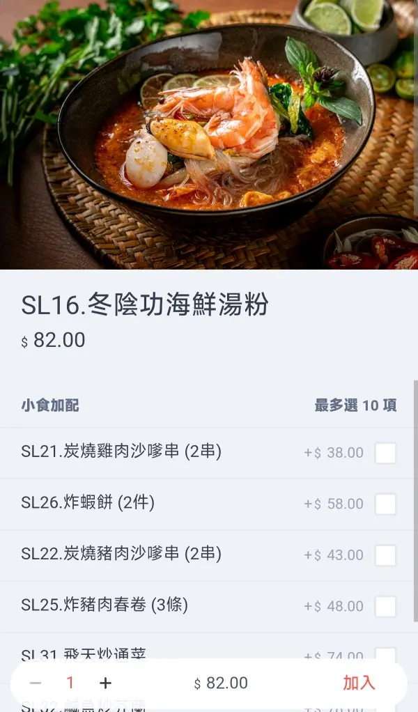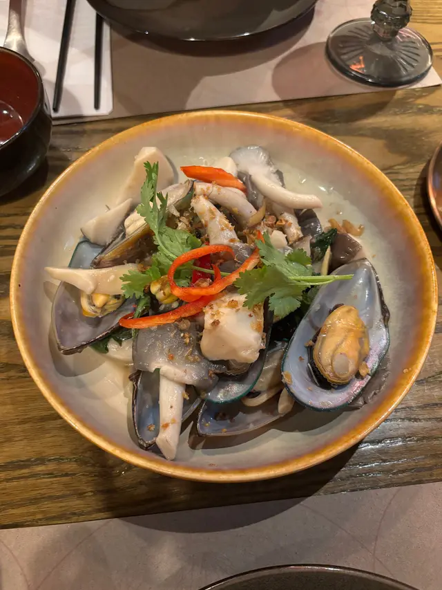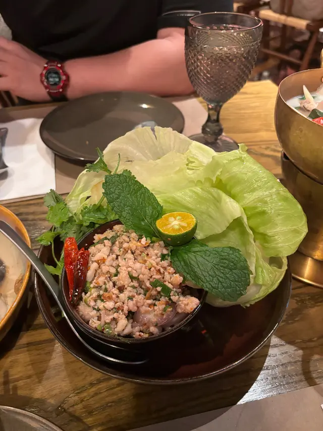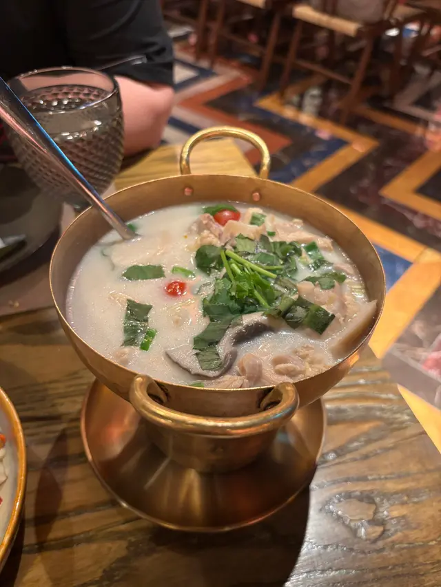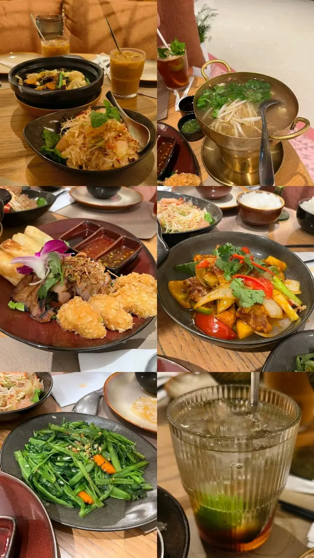 啱啱同朋友一齊食咗個四人套餐,真係超豐富!😋 成枱都擺唔晒啲餸,睇到都開心,食落更加滿足~每道菜都好有特色,味道層次分明,真係食到停唔到口!🍲 雜菜粉絲鍋 :材料勁多,有木耳、粟米條、粉絲、椰菜花、紅蘿蔔等等,香味撲鼻,一上枱就令人流晒口水🤤。湯底好鮮甜,啖啖都係新鮮味道,暖笠笠好舒服~🥬 蒜蓉炒通菜 :炒得好香,通菜又脆又嫩,食落好清爽,真係一流!👍🦐 大蝦柚子沙律:微辣但唔會太刺激,柚子酸味啱啱好,配埋大蝦超清新~夏天食就啱晒!🌞🐟 泰式魚翅湯 :雖然份量唔算多,但湯底好鮮甜,仲有兩款醬料配搭,一款酸辣、一款折醋,飲落層次感十足,好有泰國風味~🍍 泰式甜酸咕嚕肉 :呢道主菜就有啲細份,略為失望😕。不過菠蘿甜味同咕嚕肉幾夾,只係肉唔夠脆,但整體甜酸味都幾開胃~🍢 滋味小食拼盤 :有豬頸肉、春卷、炸豬,三款醬料任你點!春卷炸得金黃酥脆,咬落卡滋卡滋,好正!💥🪑 座位好舒服,食得又放鬆~不過店員會安排客人坐出面,令餐廳氣氛熱鬧啲,但可能會覺得有啲逼~🥤 至於飲品呢:泰式奶茶:偏甜但好有風味🧋 椰糖青檸梳打:味道特別,值得一試🍈雙檸泰冰茶:清新檸檬香,檸茶 fans 必試🍋呢個用餐體驗好開心,菜式都幾多元化,啱晒鍾意試新嘢嘅朋友~下次一定要再嚟,繼續發掘更多美味!😄🍽️查看更多