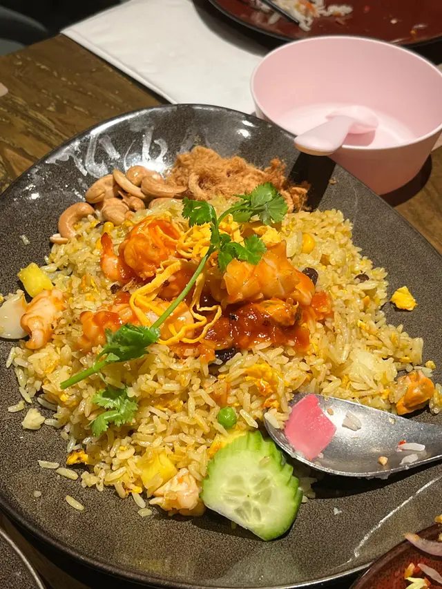 今晚跟女兒食泰菜,看到餐廳環境不錯,叫了咖喱大頭蝦,冬蔭湯及菠蘿海鮮炒飯,賣相不錯,味道也好,但開始時有點委屈,入座時知道廚師快下班,要快點叫菜,但幫忙點餐那位女餐廳職員真的給我不好的感覺,催著下單,但因女兒在,不好發作,我心諗既然都比我入座消費,為什麼連一點看餐牌的時間都不給我,一坐低就好像監督一樣,站在隔離盯着我,感覺催我要快點點餐一樣,點餐過程,不太愉快,那名女職員面色也不太好,便想着與女兒快點食完匆匆離開,美中不足!中途有一位男職員聽我說了兩句事情經過,便送了一件蛋糕給我們,女兒很喜歡,點讚查看更多