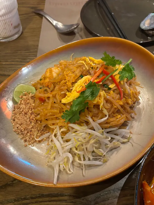 銅鑼灣最近很多泰式餐廳,小妹超愛吃泰菜。朋友說想試這間,就來吧平日午飯時間,不用等位店很大!門口出面都有位置,沙發位的設計挺別致,整個餐廳的裝修都很有風味很漂亮真的蠻大的,難怪不用等位午市套餐價錢在銅鑼灣尚算合理~小妹點了海鮮冬陰功金邊粉,配蜜瓜烏龍茶$82+10%如何說呢~冬陰功的酸味足,且是微辣,但感覺跟平時飲開的不太一樣好似是魚湯底吧,其實蠻不錯的。只是這家的金邊粉有點厚身,似在內地吃到的厚身河粉,口感較粉狀,像煮不熟似的,有點影響他掛湯的功能雖然說是海鮮冬陰功,但整碗只有一隻蝦,魷魚反而給了不少,只是偏硬,需要時間咀嚼~青口則有兩隻!朋友點了豬頸肉扎肉炸蛋飯配泰式奶茶$86+10%這個價錢來說,豬頸肉的份量好像有點少不過朋友說豬頸肉好吃下次小妹也可以嘗試這款不過不失~下次可以嘗試其他菜式查看更多