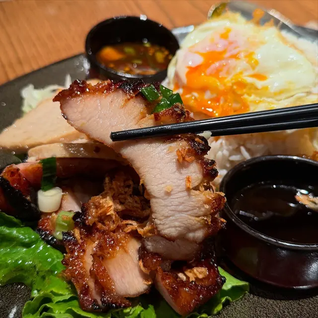小編今日來到銅鑼灣一間泰國餐廳「青青泰國料理」,裝修充滿泰式風情與浪漫綠意設計🪴 柔和的燈光與木質元素,營造出悠閒用餐氛圍✨以傳統泰菜融入創新食材,主打招牌炭燒豬頸肉、金不換辣肉碎飯、炒金邊粉、泰式咖喱等🇹🇭 感受泰國熱帶風情,與親朋好友聚會的絕佳選擇👍🏼「炭燒豬頸肉扎肉炸蛋飯」,炭燒豬頸肉外皮微焦香脆,蜜香和炭火香氣十足,肉質爽彈,油潤無肉羶味🐷 搭配泰式酸甜辣醬或者甜醬油,酸香解膩,非常惹味👏🏼扎肉緊實有彈性,帶有傳統泰式風味,鹹香適中✨ 炸蛋內裡蛋黃流心,與白飯一起入口,滿口香濃,簡單組合的小驚喜,滋味十足,一次過品嚐多款經典泰式風味🧡🍽:燒豬頸肉、扎肉、炸蛋(流心)飯(共10件)👅好味指數:8.25/10💰消費:HK$86📍地址:青青泰國料理 (銅鑼灣) — 銅鑼灣軒尼詩道500號希慎廣場3樓316-319號舖查看更多