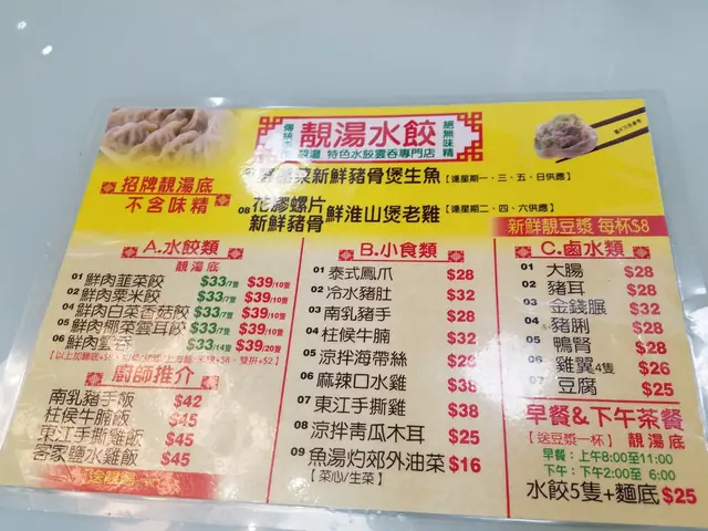 靚湯水餃 (大角咀) 网址: https://s.openrice.com/QrLS0CFC700 地址: 香港大角咀埃華街103號地舖 电话: +852 60200808