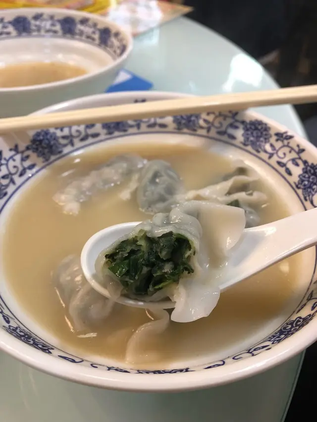 大角嘴食店林立, 不乏高價餐廳,但若想平平地吃一頓清淡晚飯, 這家的湯餃就是不錯選擇menu不多, 不同日子湯底不同魚湯或雞湯各有特色, 個人較喜歡魚湯, 因為有西洋菜味道會突出一點白菜香菇餃餃子皮的厚度和餡的比例很好雖然皮不是超薄, 但咬着也有口感碗很大, 是湯碗每次都會把一整碗喝完雲吞, 不是雲吞麵店的那種鮮蝦雲吞而是小小的一粒, 皮超薄這家說到尾重點都是湯底是可以喝清光的環境嘛就很有街坊味不少人穿着簡便, 來到坐下看電視, 平平淡淡也是福氣查看更多