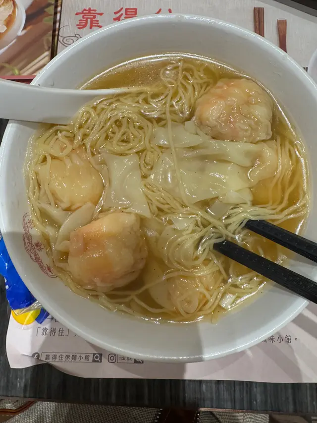 本來冇打算寫食評,所以一上野都冇影相,但一食個麵就忍唔住想講下同屋企人下午茶,屋企人叫咗艇仔粥+油炸鬼,我就叫咗雲吞麵+凍豆漿艇仔粥我冇份食所以唔講。凍豆漿不過不失。油炸鬼唔知係咪即炸,熱辣辣又好脆口,我同屋企人都好鍾意。但我想講嘅係個麵。$38,份量以下午茶嚟講唔算貴,冇因為下午茶平咗而馬虎,個麵面照舊有啲蝦子係面,都係上枱先係客面前先用個壺斟湯,第一次見識,都幾特別。有5粒雲吞,雲吞皮薄,未咬開都見到係原蝦而唔係蝦肉碎上,蝦夠爽,雲吞size可以一口一粒。但麵真心覺得麻麻,鹼水味極重,雖然冇勁到變苦味,但非常之攻鼻,本身有鼻敏感的我,天氣凍/涼個鼻會塞塞地,食第一啖麵嘅時候,鹼水味衝擊到個鼻通咗,不過口感彈牙嘅,如果可以冇咁鹼水味會好啲…查看更多